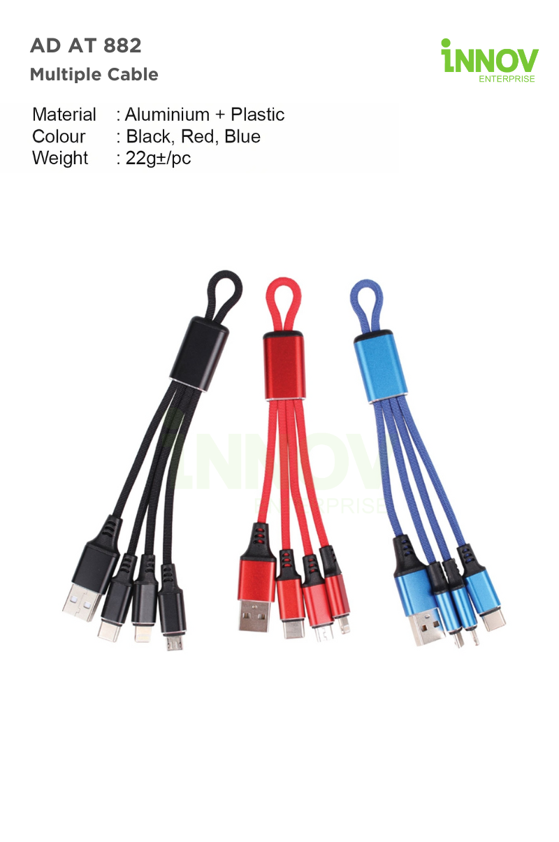 Simplify your charging needs with the AD AT 882 Multiple Cable—a compact and versatile 3-in-1 charging cable built for convenience, portability, and brand visibility. Designed for modern users with multiple devices, this handy Multiple Cable features connectors for Type-C, Lightning, and Micro USB, making it compatible with most Android, iOS, and USB-powered gadgets.