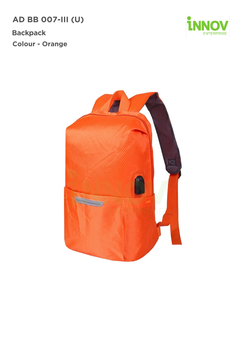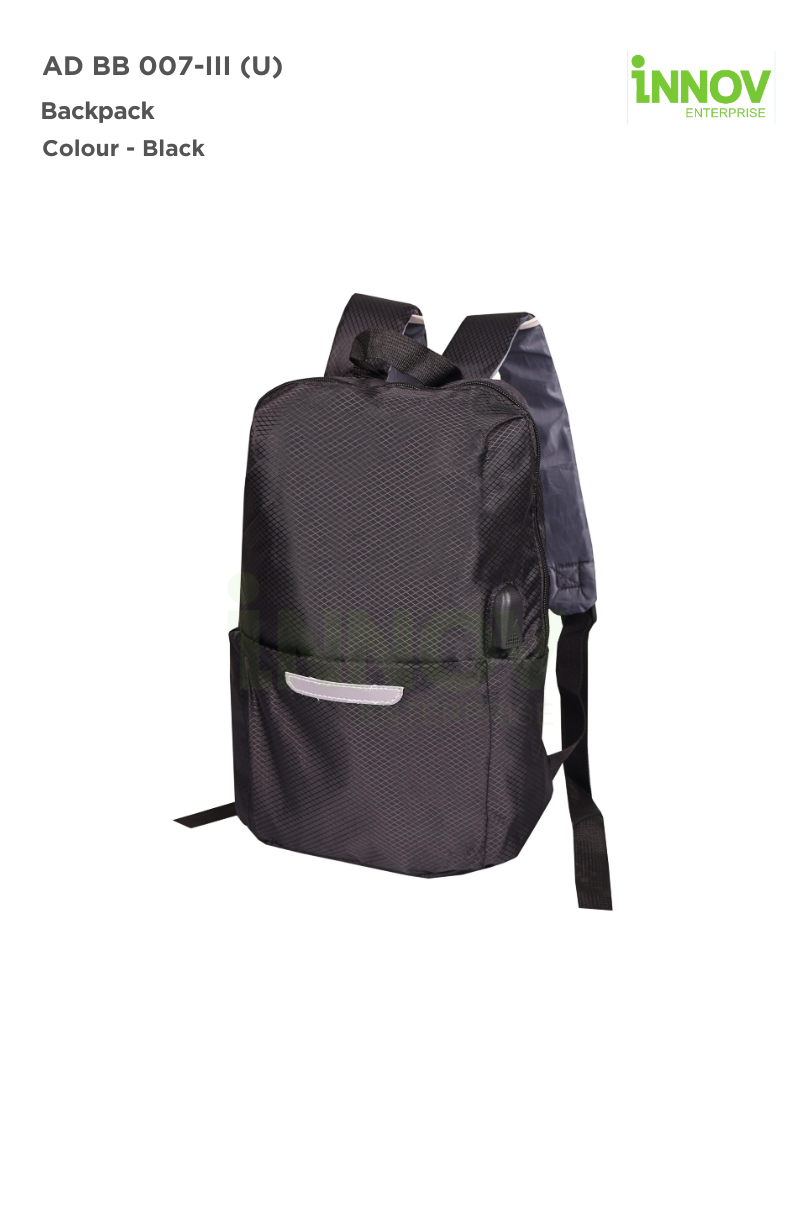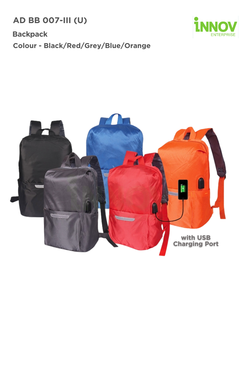The AD BB 007-III (U) Backpack is the ultimate blend of functionality, style, and convenience. Designed for professionals, students, and travelers, this Water Resistant Backpack is crafted from high-quality polyester to keep your essentials dry and protected. Its lightweight and compact design (weighing just 119g) ensures effortless carrying, while the built-in USB charging port allows you to stay connected on the go (power bank not included).