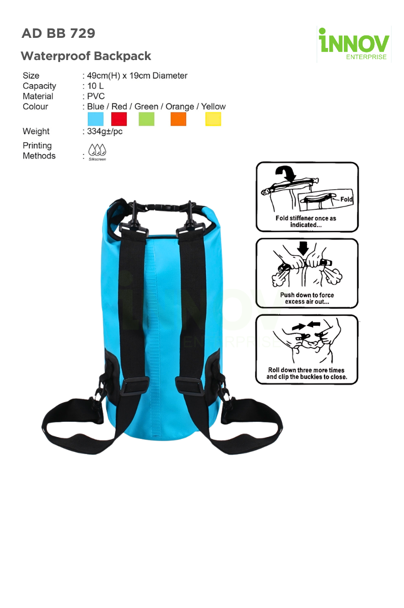 At Innov Enterprise, we offer premium branding solutions for your PVC Waterproof Backpack, ensuring durability and visibility.