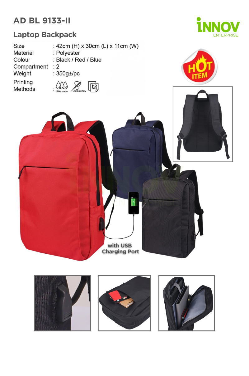 With a custom branding area of 12cm (W) x 6cm (H), businesses and organizations can personalize the backpack with Silkscreen, HD Print, or Embroidery, making it perfect for corporate gifts, promotional giveaways, and branded merchandise. Whether for work, travel, or study, the BL 9133-II Laptop Backpack is an essential accessory that combines style, functionality, and practicality.