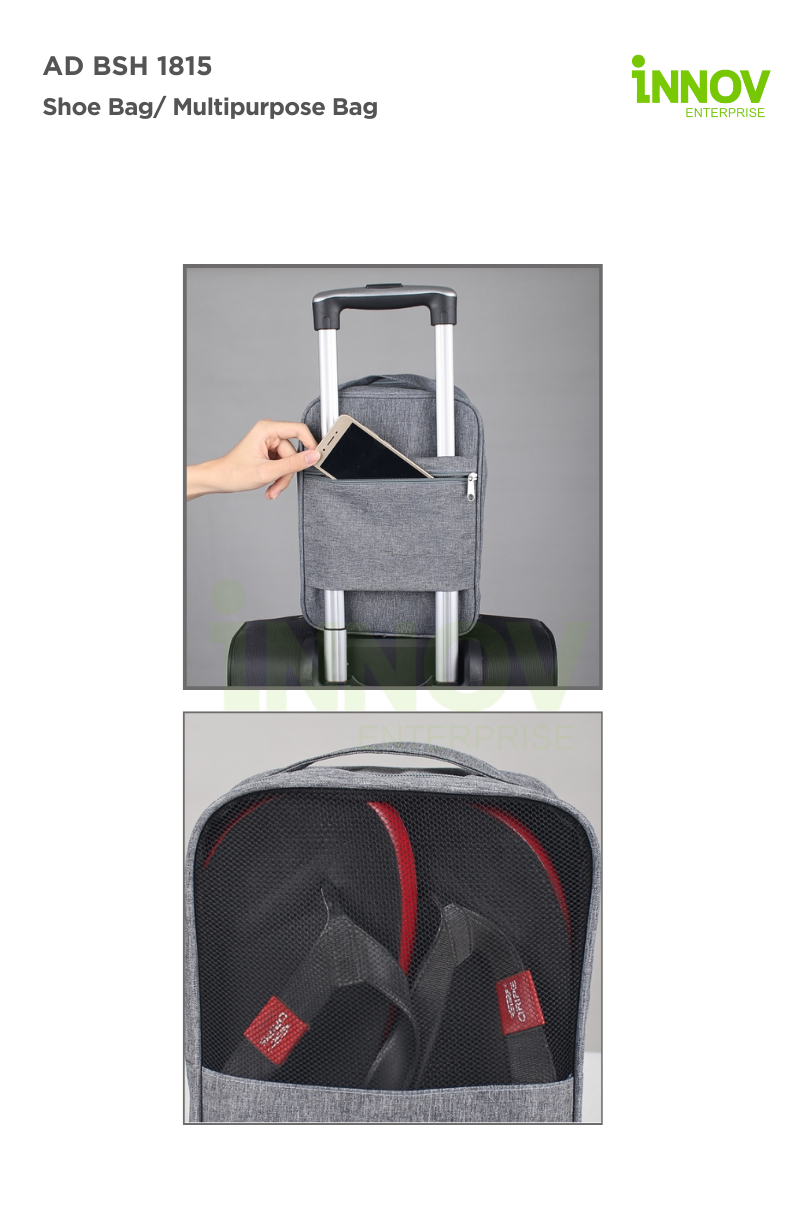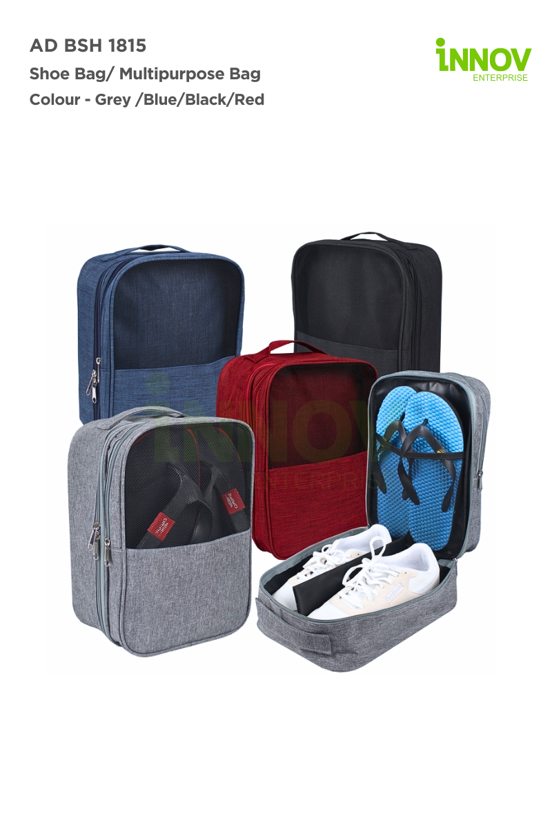 The AD BSH 1815 Shoe Bag is more than just a shoe carrier—it’s a versatile, multipurpose bag designed for maximum organization and convenience during travel, gym sessions, or daily use. Crafted from durable polyester, this lightweight bag (325g ± per piece) features a spacious design measuring 31cm (H) x 22cm (L) x 15cm (W), providing ample room to store shoes, flip-flops, gym gear, or travel essentials. Its multiple compartments keep items neatly separated, while internal mesh pockets add extra storage flexibility.