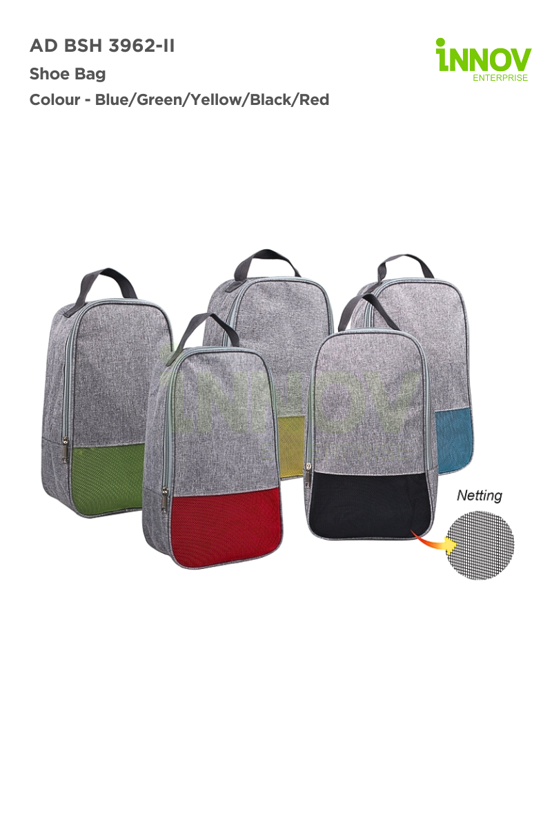 The AD BSH 3962-II Shoe Bag is a versatile, breathable, and durable storage solution designed to keep your footwear fresh, protected, and easy to carry. Made from high-quality polyester with a netted panel, it enhances ventilation to reduce odour buildup while ensuring long-lasting use. This lightweight and spacious shoe bag weighs just 145g ± per piece and measures 34cm (H) x 20cm (L) x 12cm (W), offering ample space for shoes, gym gear, and travel essentials.