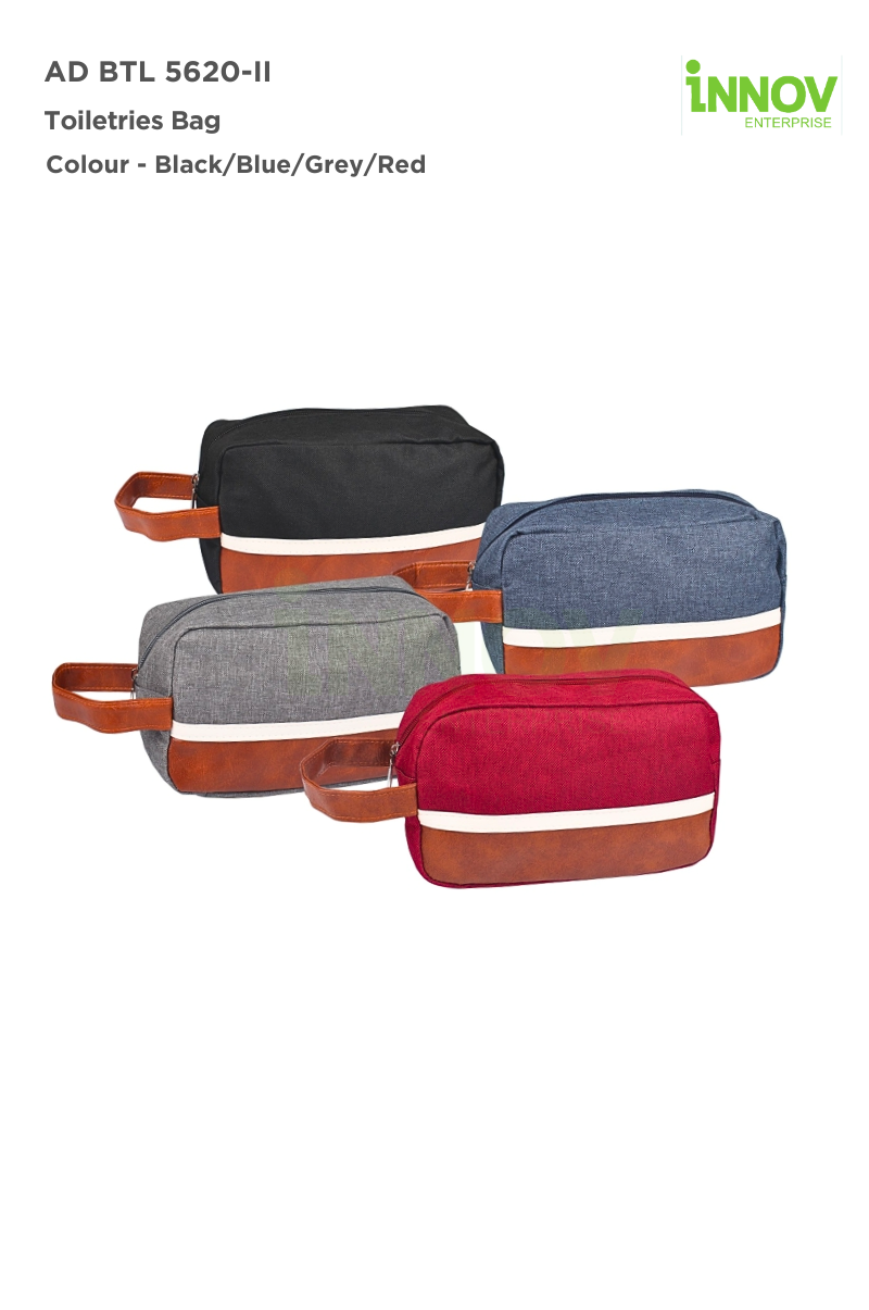 The AD BTL 5620-II Toiletry Bag is a sleek and functional storage solution designed for convenience, durability, and modern style. Featuring a tri-tone color design, this bag adds a stylish contrast while maintaining a professional look. Made from premium polyester and PU leather, it is lightweight yet sturdy, offering a luxurious touch while providing ample room for toiletries, grooming essentials, and cosmetics, making it perfect for travel, gym, or daily use. Its spacious main compartment ensures efficient organization, while the sturdy side handle allows for easy carrying.