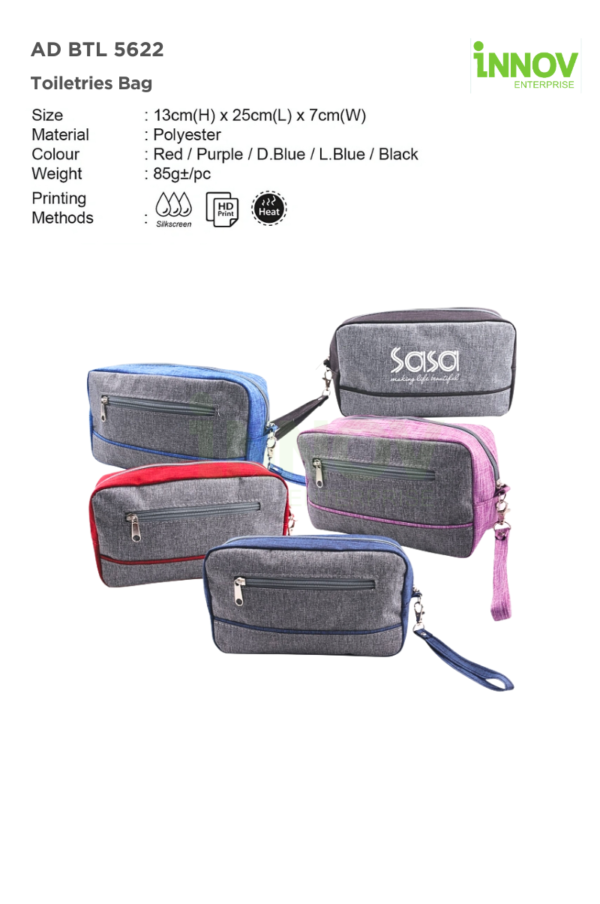 The AD BTL 5622 Toiletries Bag is the perfect toiletry organizer for travel, business trips, gym sessions, or everyday use. Crafted from durable polyester, this lightweight bag offers multiple compartments for efficient storage while keeping essentials secure and accessible. With a compact size of 13cm (H) x 25cm (L) x 7cm (W), it provides ample space for toiletries, cosmetics, grooming tools, and personal items without adding bulk.
