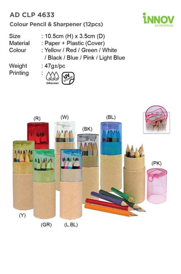At Innov Enterprise, we transform the AD CLP 4633 Colour Pencil & Sharpener (12pcs) into a unique promotional tool with: