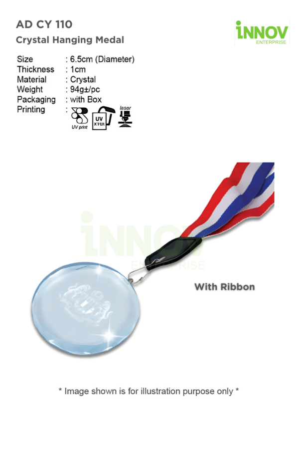At Innov Enterprise, we offer personalised enhancements to make your Crystal Hanging Medal stand out: