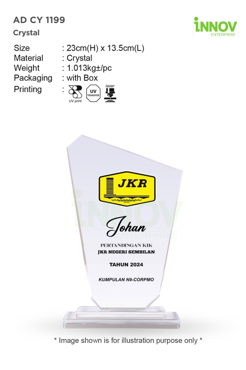 Measuring Size: 23cm (H) x 13.5cm (L) and weighing: 1.013kg±/pc, the AD CY 1199 offers a premium feel without being oversized—ideal for everything from staff appreciation to award presentations at public ceremonies.