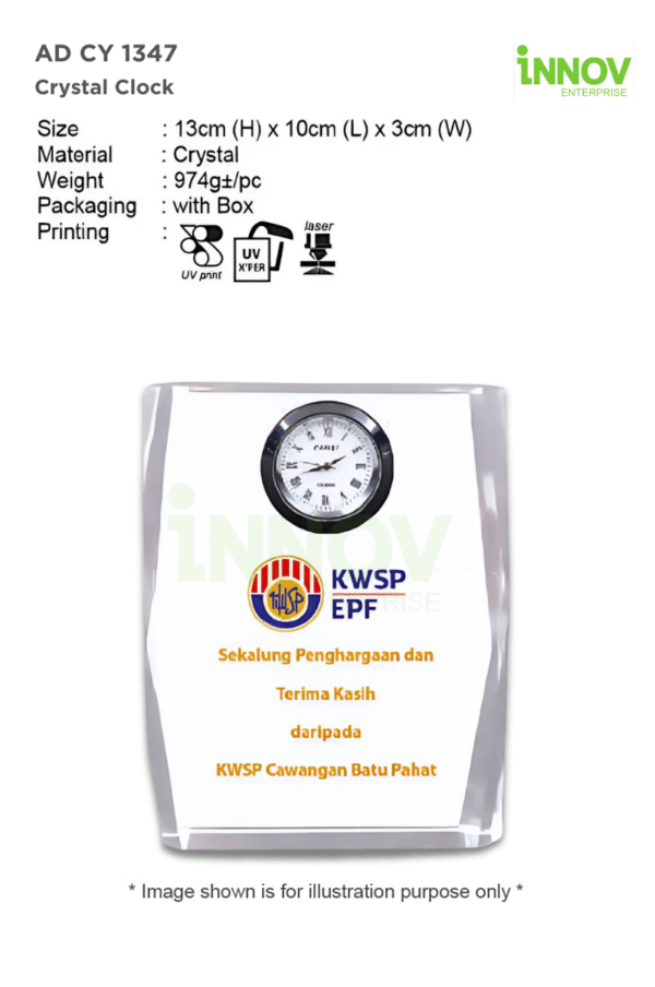 Whether used for long-service awards, executive giveaways, or milestone recognition, the AD CY 1347 offers a tasteful blend of functionality and sentiment. This crystal clock is more than a gift—it’s a reminder of lasting value and thoughtful appreciation.