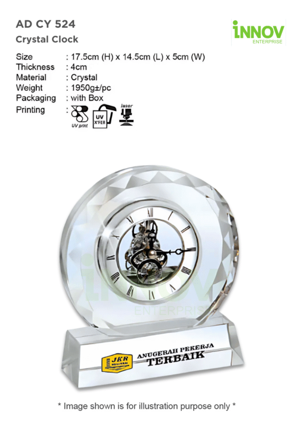 Ideal for corporate milestones, service anniversaries, or high-end gifting, the AD CY 524 Crystal Clock turns every recognition into a premium experience. Its crystal base provides generous space for custom branding or messages using UV Print, UV Transfer, or Laser Engraving.