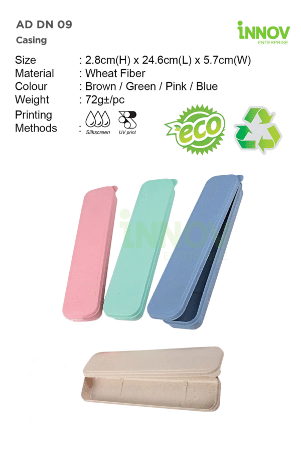 The AD DN 09 Casing is a stylish and compact custom cutlery case made from sustainable wheat fiber—perfect for eco-conscious organisations looking to promote their brand with purpose. Designed to neatly store reusable cutlery, eco straws, or small tools, this lightweight case combines practicality with environmental responsibility.