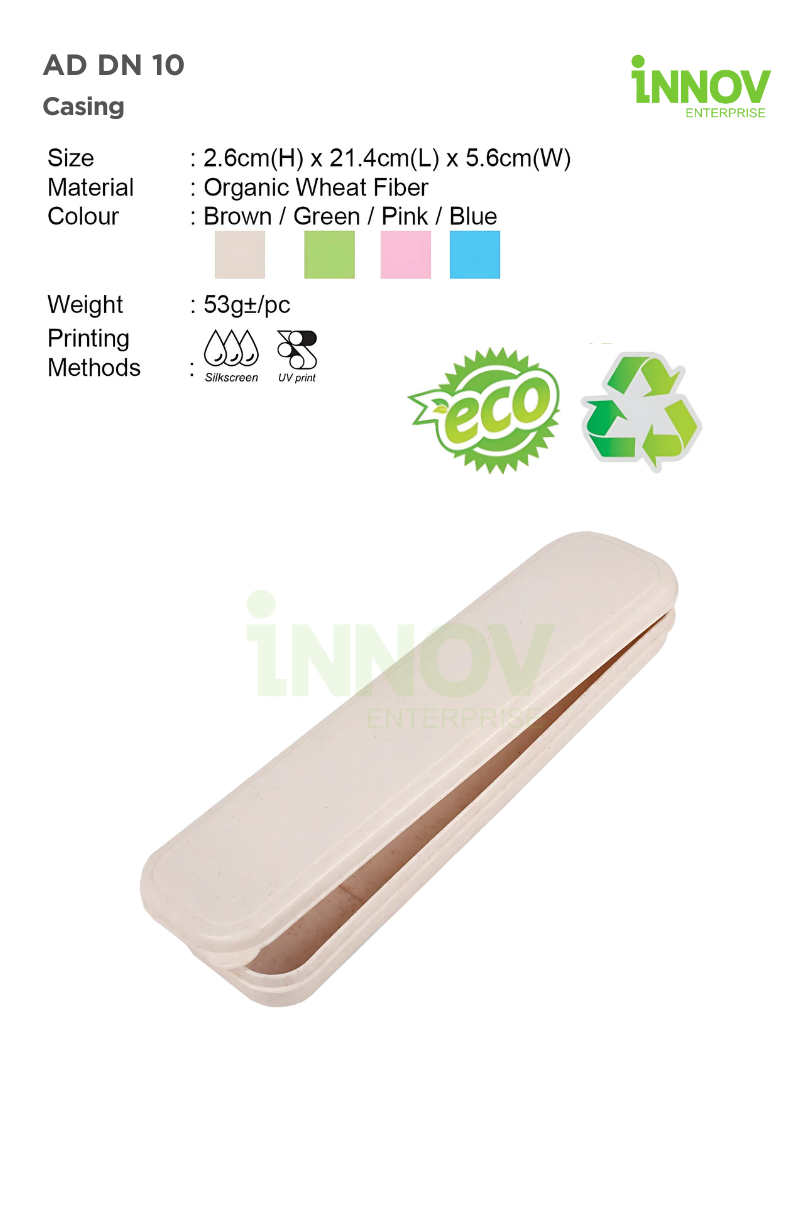 The AD DN 10 Casing is a sleek and sustainable cutlery case designed for modern, eco-conscious lifestyles. Crafted from biodegradable wheat fiber, it offers a lightweight and compact solution for storing reusable utensils, eco straws, or personal care items—making it ideal for office, school, or travel use.