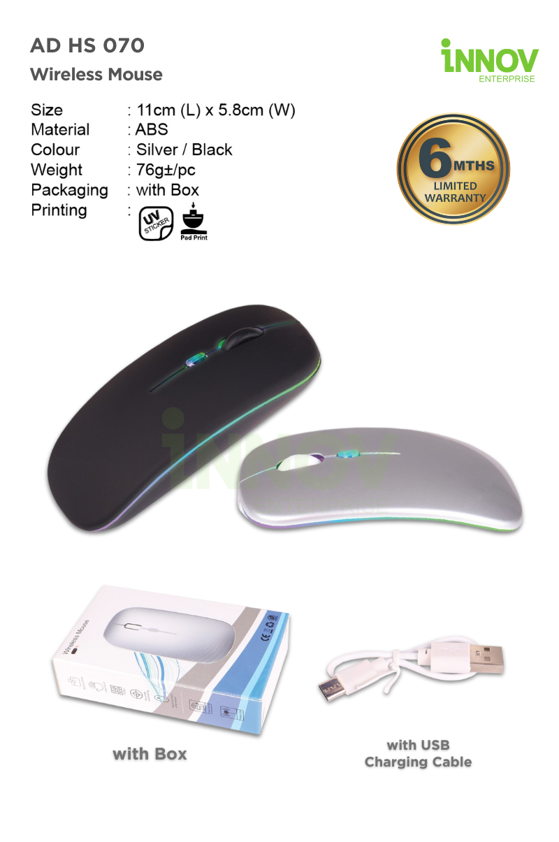 Order Now! Ready to elevate your corporate gifts with the AD HS 070 Wireless Mouse? Add to quote or contact us today for a free consultation and personalised quotation!