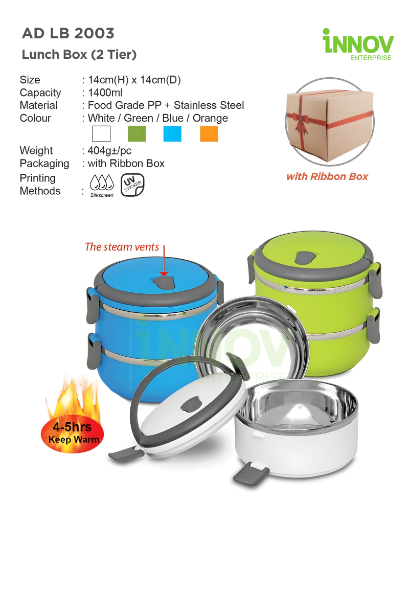Order Now! Want to customise the AD LB 2003 Lunch Box (2 Tier) with your brand logo? Add to quote or contact us today for bulk orders and branding options!