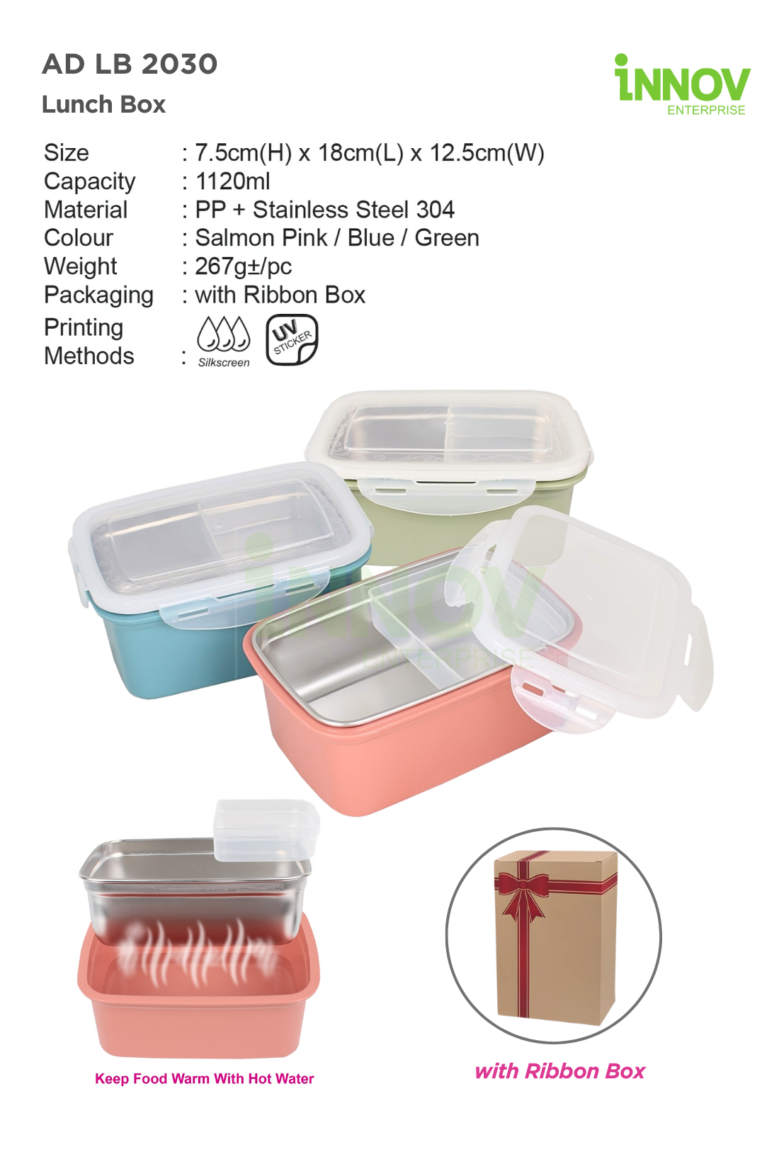 At Innov Enterprise, we can customise this Stainless Steel Lunch Box with your branding: