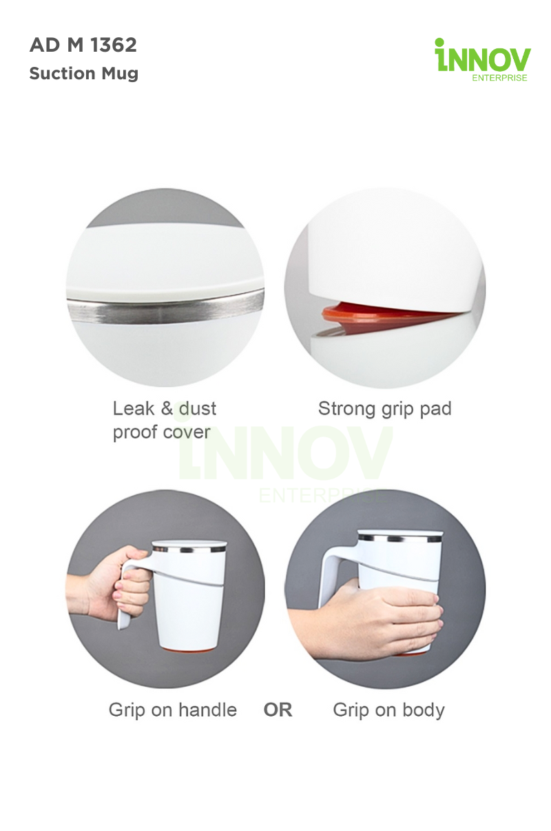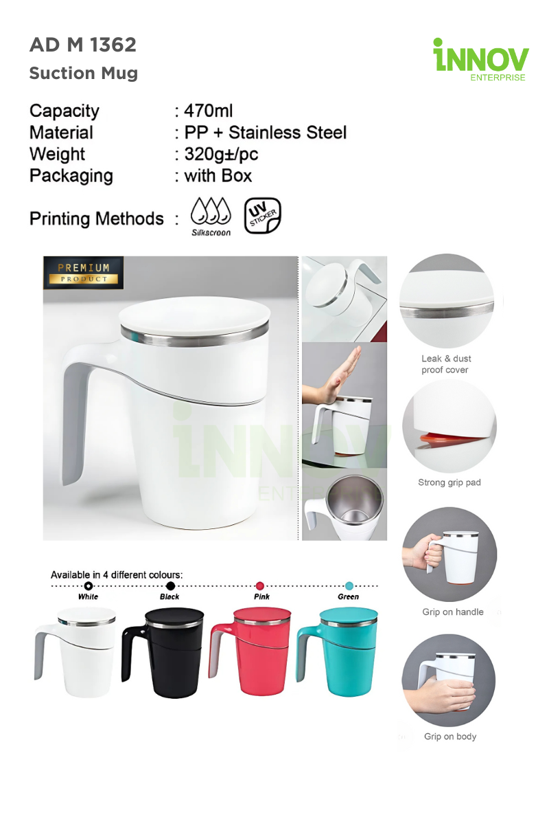 Order Now! Whether you’re looking to impress clients or equip your team with practical branded drinkware, the AD M 1362 Suction Mug delivers both function and flair. Enquire today to personalise this premium mug with your corporate branding or logo!