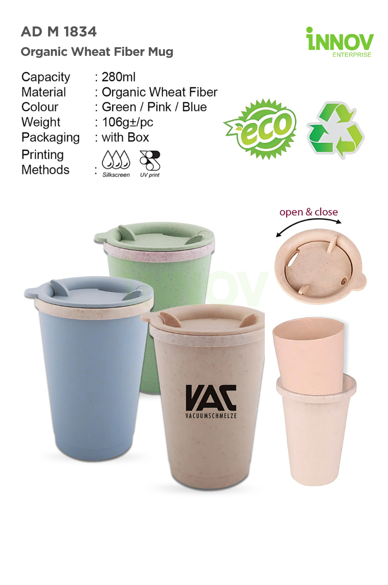 Order Now! Show your brand’s commitment to sustainability by custom-printing your logo on the AD M 1834 Organic Wheat Fiber Mug. With its sleek design and practical use, it’s a promotional product your recipients will use—and remember—every day. Add to quote or contact us today for a free consultation and no-obligation quotation!