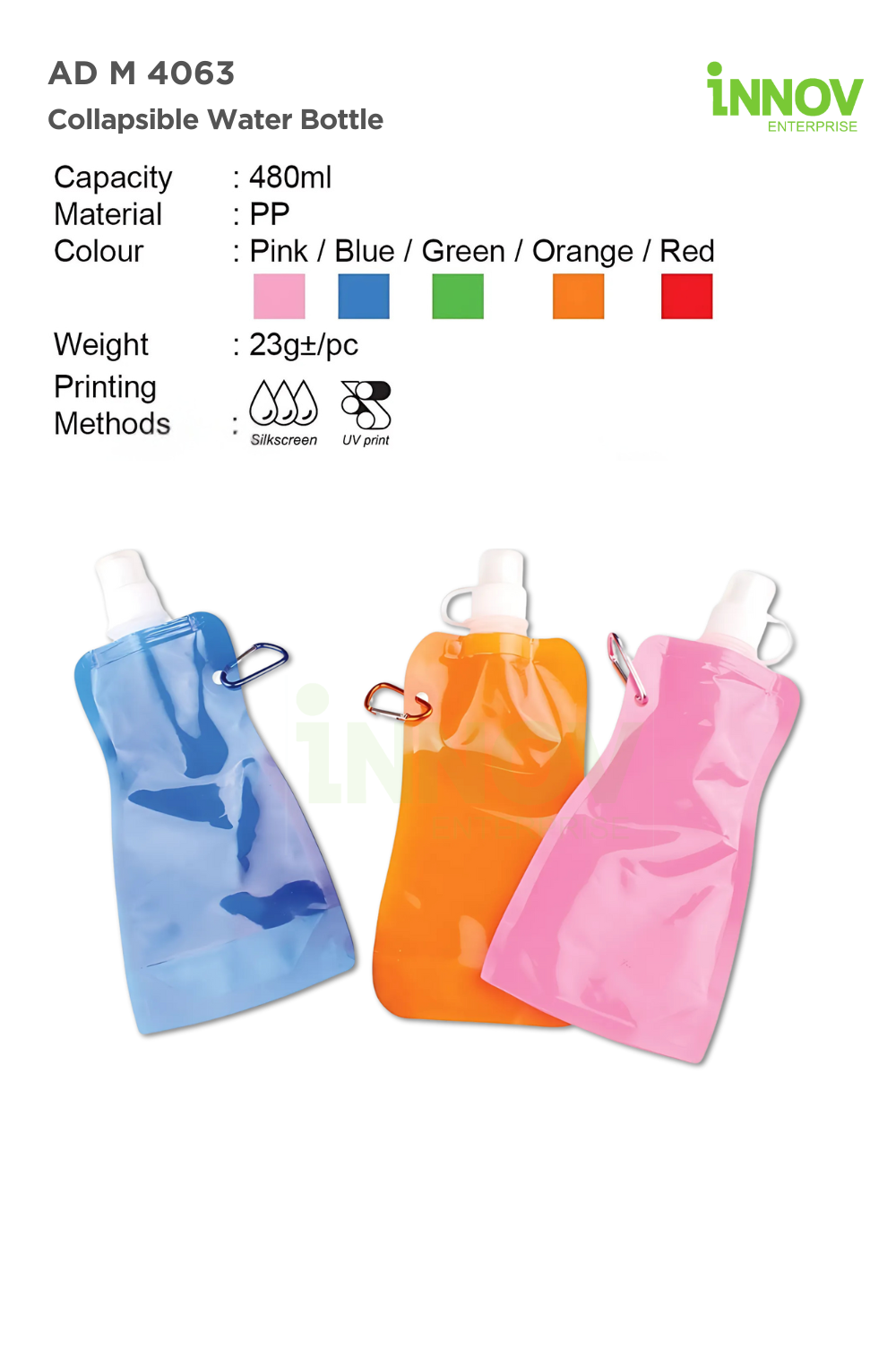 The AD M 4063 Collapsible Water Bottle solution is perfect for businesses and organisations looking for a practical, eco-friendly promotional gift. With its 480ml capacity, this foldable water bottle ensures convenient hydration on the go—whether for sports, school, office, or outdoor activities. Its collapsible design allows the bottle to be rolled up or flattened when empty, saving valuable space in bags, backpacks, or even pockets.