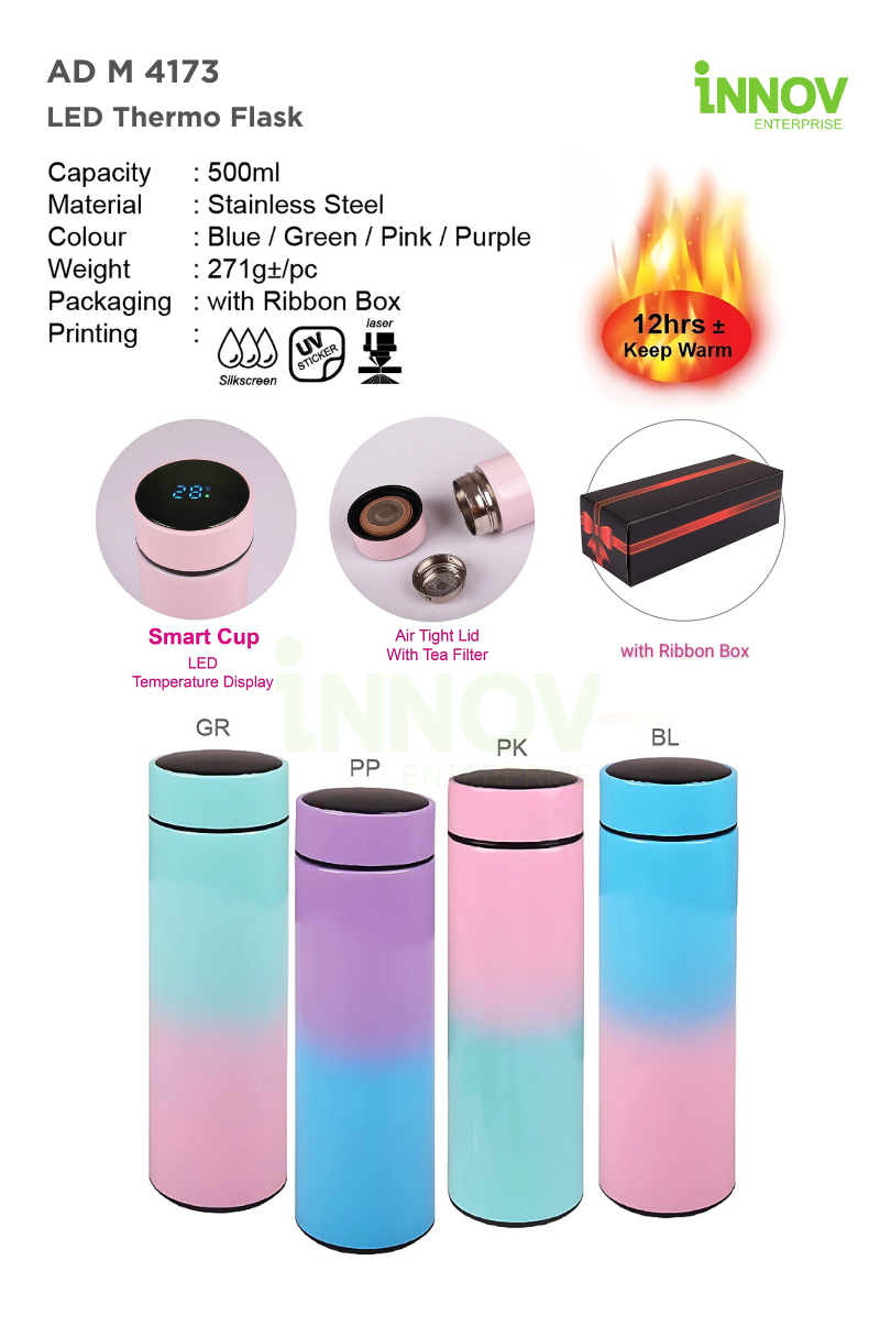 Order Now! Impress your recipients with tech and elegance—choose the AD M 4173 LED Thermo Flask! Contact us today to customise with your brand and order in bulk!