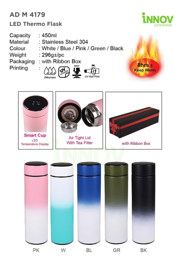 Order Now! Impress your recipients with tech and elegance—choose the AD M 4179 LED Thermo Flask! Contact us today to customise with your brand and order in bulk!