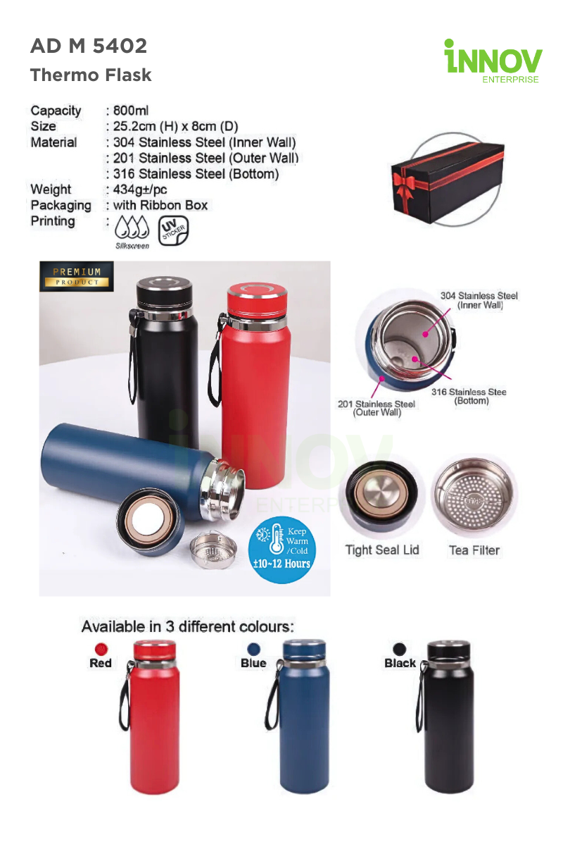 Order Now! Upgrade your corporate gifting with the AD M 5402 Thermo Flask! Enquire today to customise your order with your brand logo or message!
