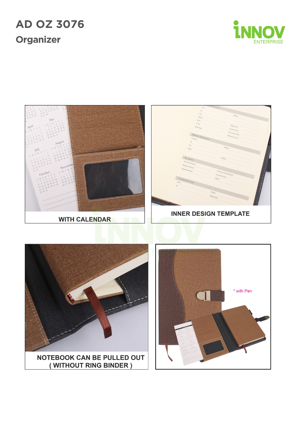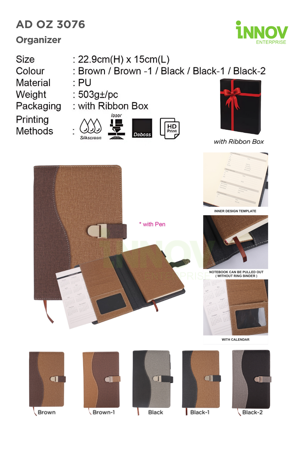 At Innov Enterprise, we customise the AD OZ 3076 Organizer with a variety of branding methods to showcase your identity: