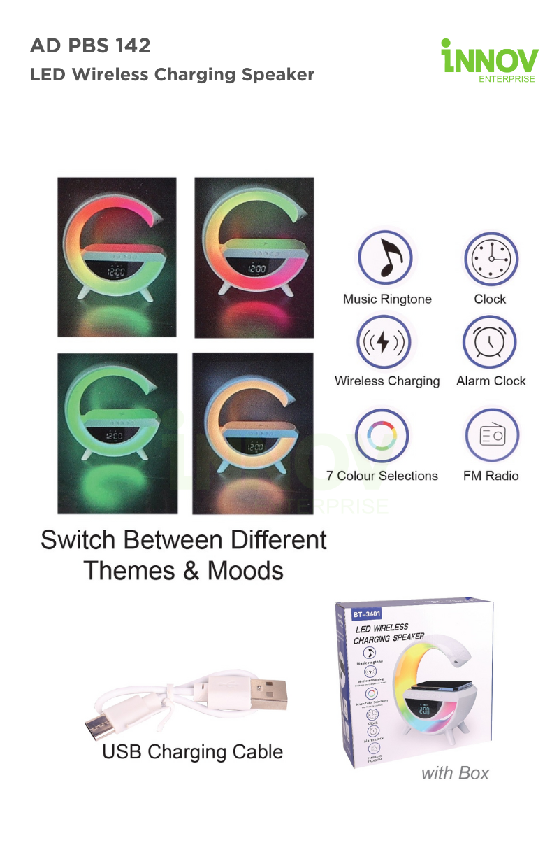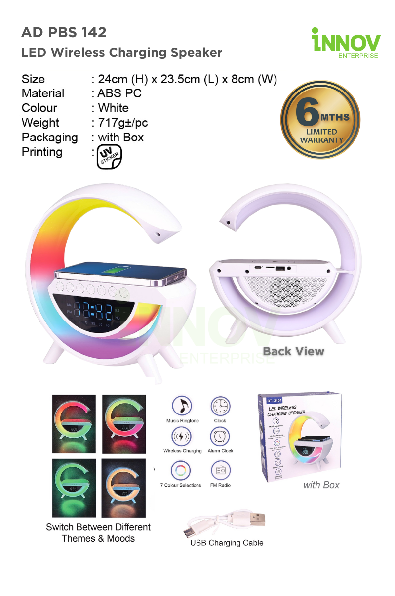 At Innov Enterprise, we help bring your brand to life through quality tech gifts like the LED Wireless Charging Speaker: