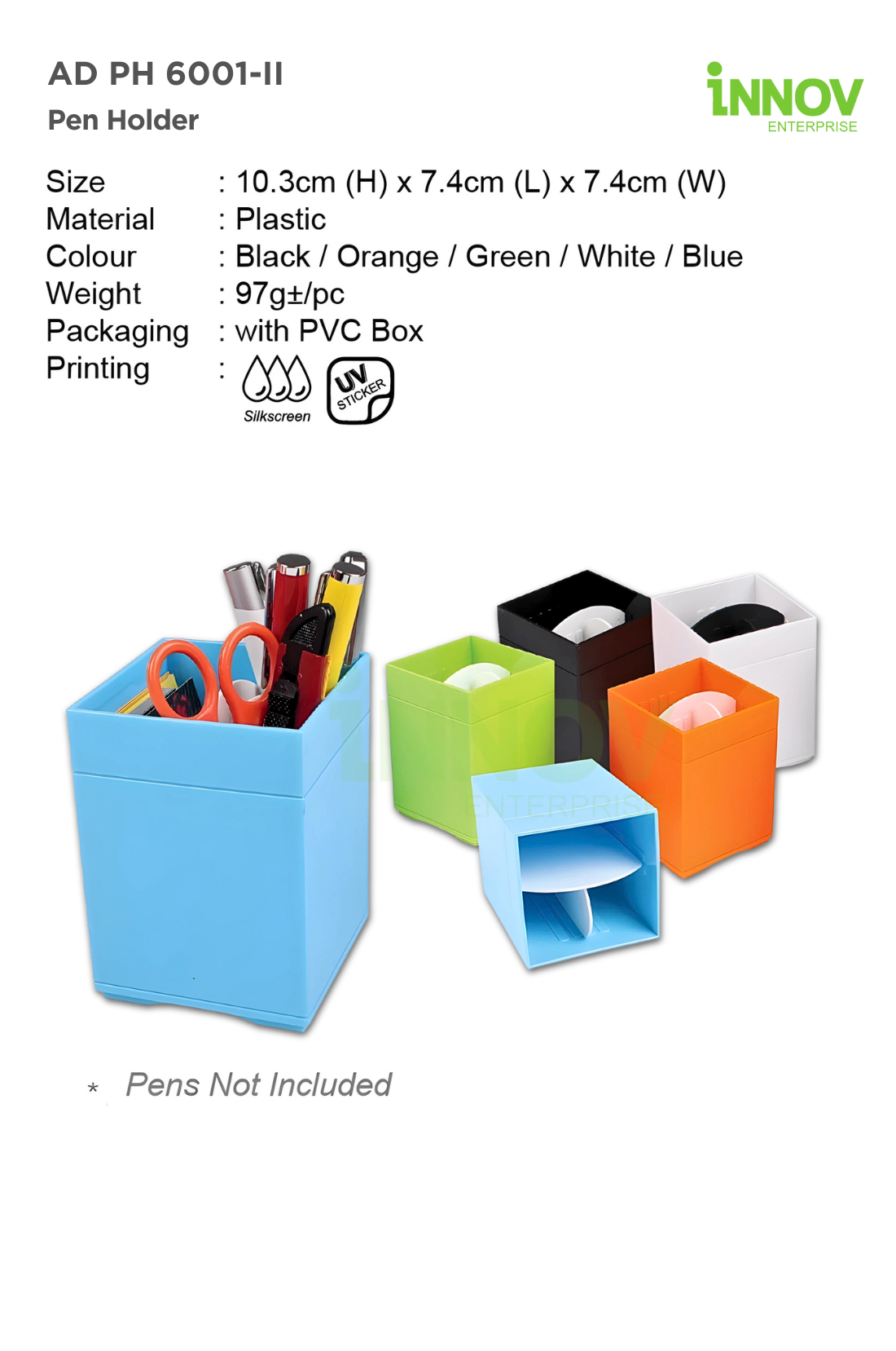 At Innov Enterprise, we offer high-quality branding services to transform the AD PH 6001-II Pen Holder into a standout promotional item: