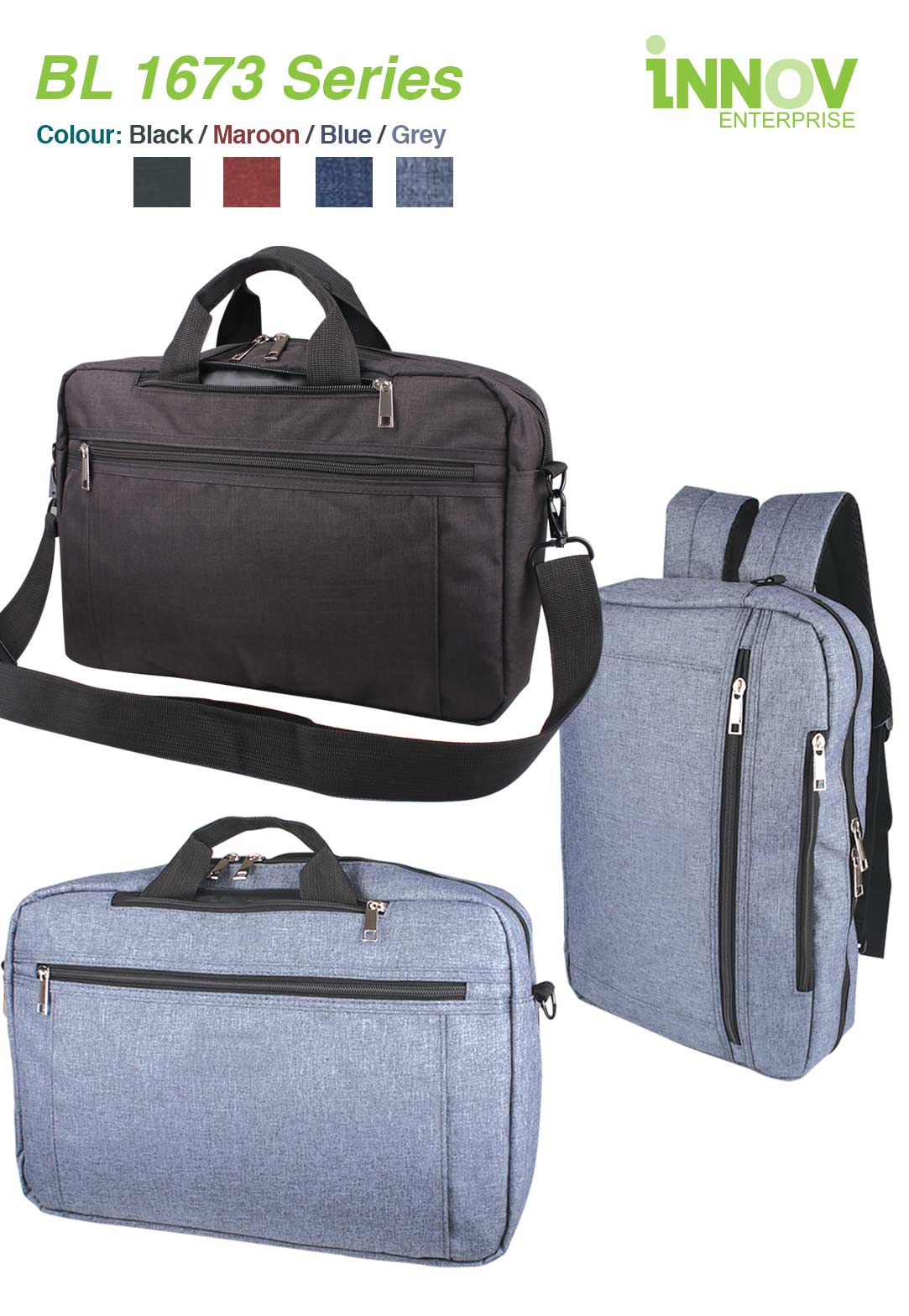 AD-BL1673 – 3 in 1 Convertible 15 Inch Laptop Sling Bag with Multiple Compartments