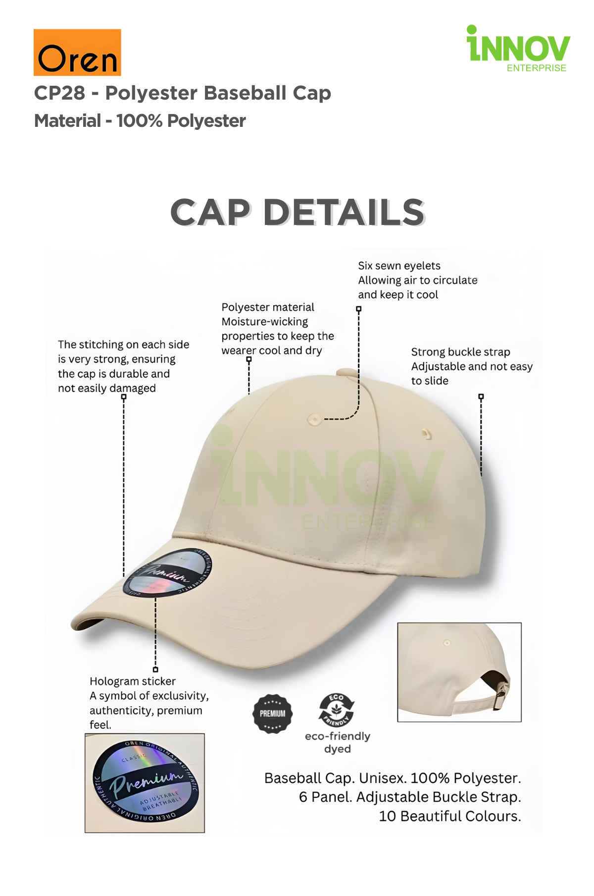Order Now! Enhance your brand visibility with the CP28 Polyester Baseball Cap — where quality meets style. Add to quote or contact us today for a free design consultation and quotation.