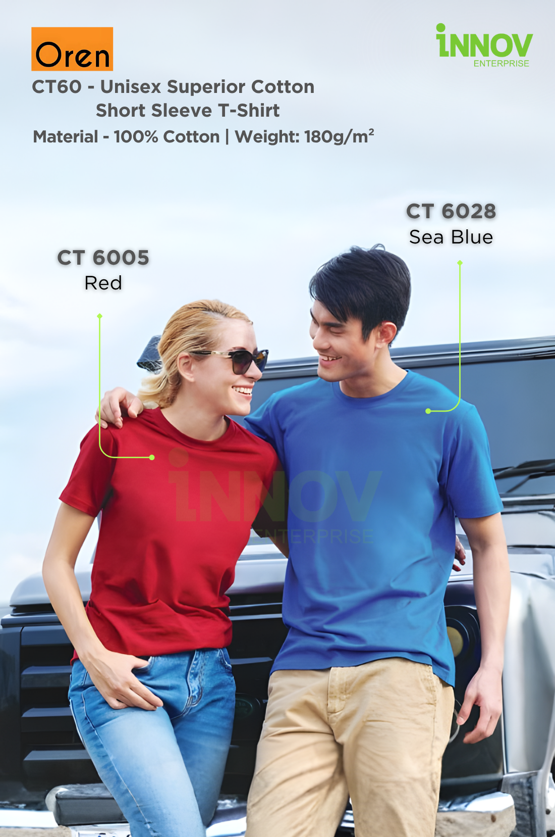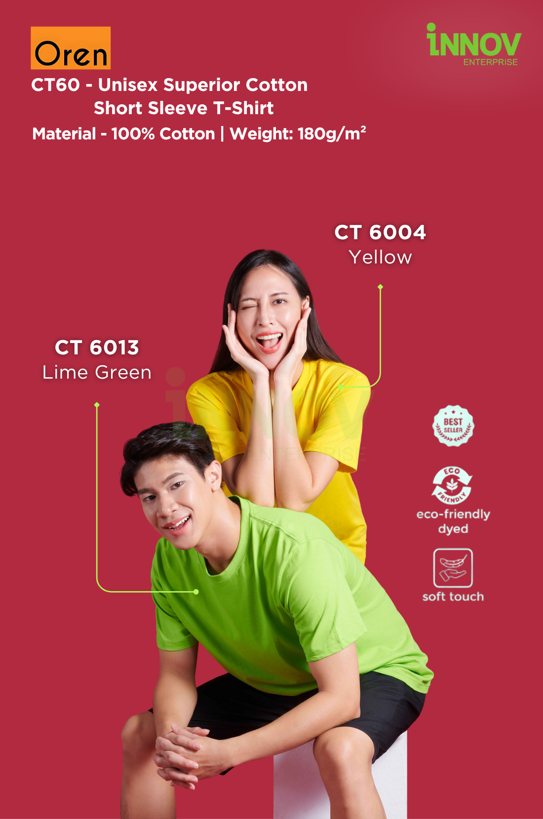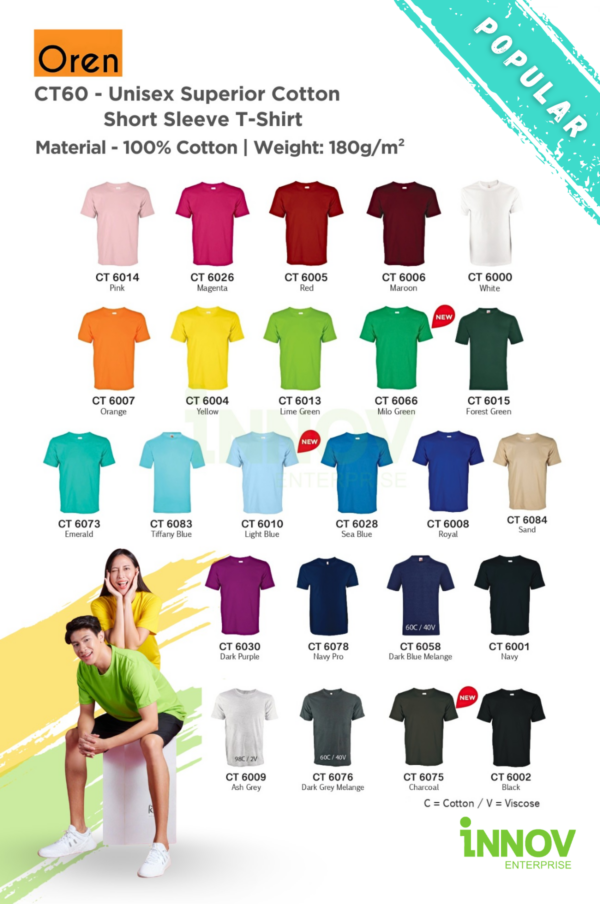 Order Now! Elevate your brand with the CT60 Unisex Superior Cotton Short Sleeve T-Shirt — where comfort meets quality. Contact Innov Enterprise today to request a quotation or free design mock-up.