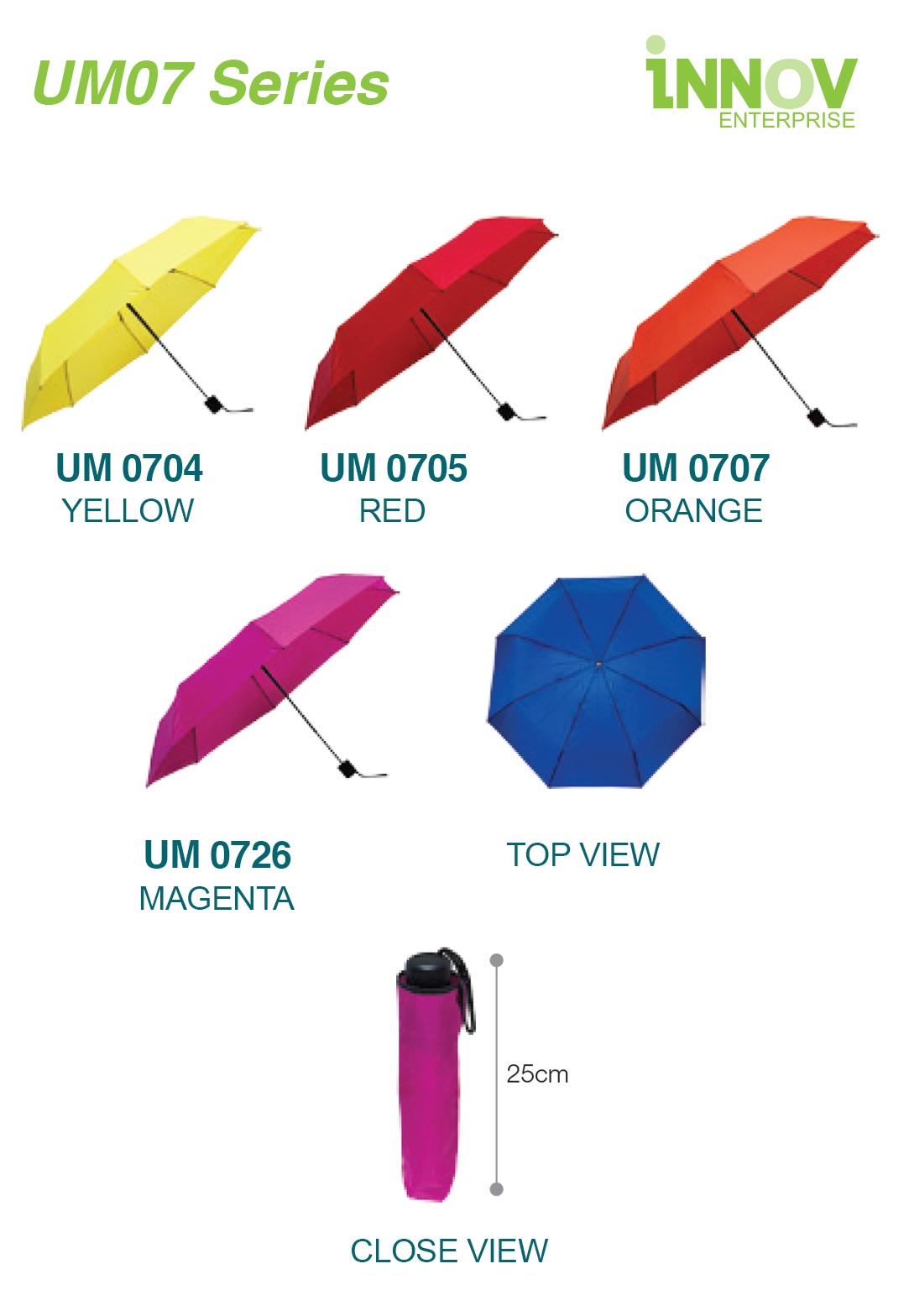 Order Now! Give your branding a colourful boost with the UM07 Umbrella Series, designed for style, portability, and strong visibility. Add to quote or contact us today for a free design consultation and custom quotation.