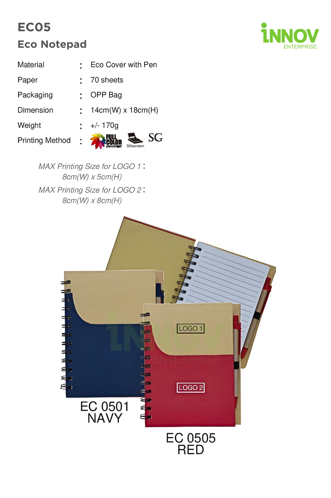 Order Now! Upgrade your corporate gifting with the EC05 Eco Notepad—practical, eco-conscious and perfect for strong brand visibility. Add to quote or contact us today for a free design consultation and customised quotation.