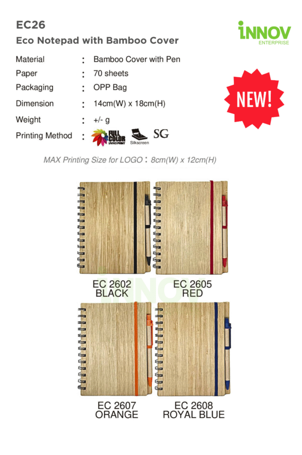 At Innov Enterprise, we provide high-quality branding for your EC26 Eco Notepad with Bamboo Cover: