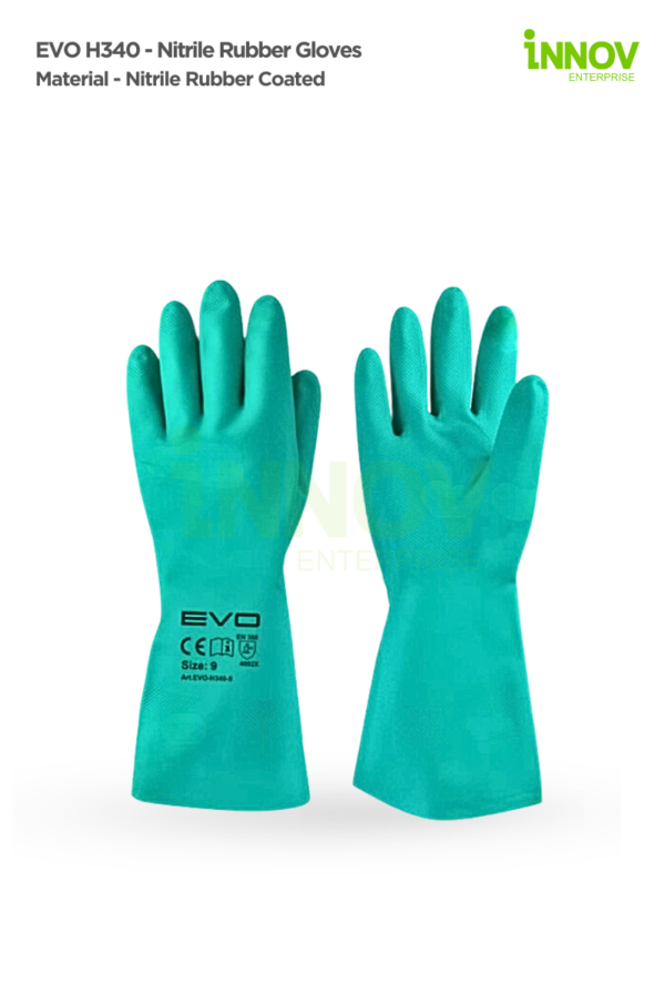 Upgrade your safety gear with EVO H340 Nitrile Rubber Gloves for dependable protection and grip in demanding environments. Add to quote or contact us today for a free quotation!
