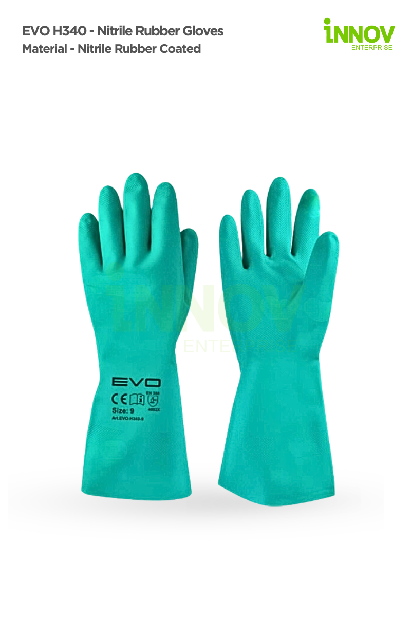Certified to EN420 and EN388:4002X standards, they provide robust Level 4 abrasion resistance, making them ideal for tasks in harsh environments where safe, efficient handling is essential. Available in green and sizes 8 to 10. For care, machine wash in warm water with mild detergent, avoiding bleach or tumble drying. Choose EVO H340 Nitrile Rubber Gloves for enhanced safety, grip, and resistance in demanding applications.