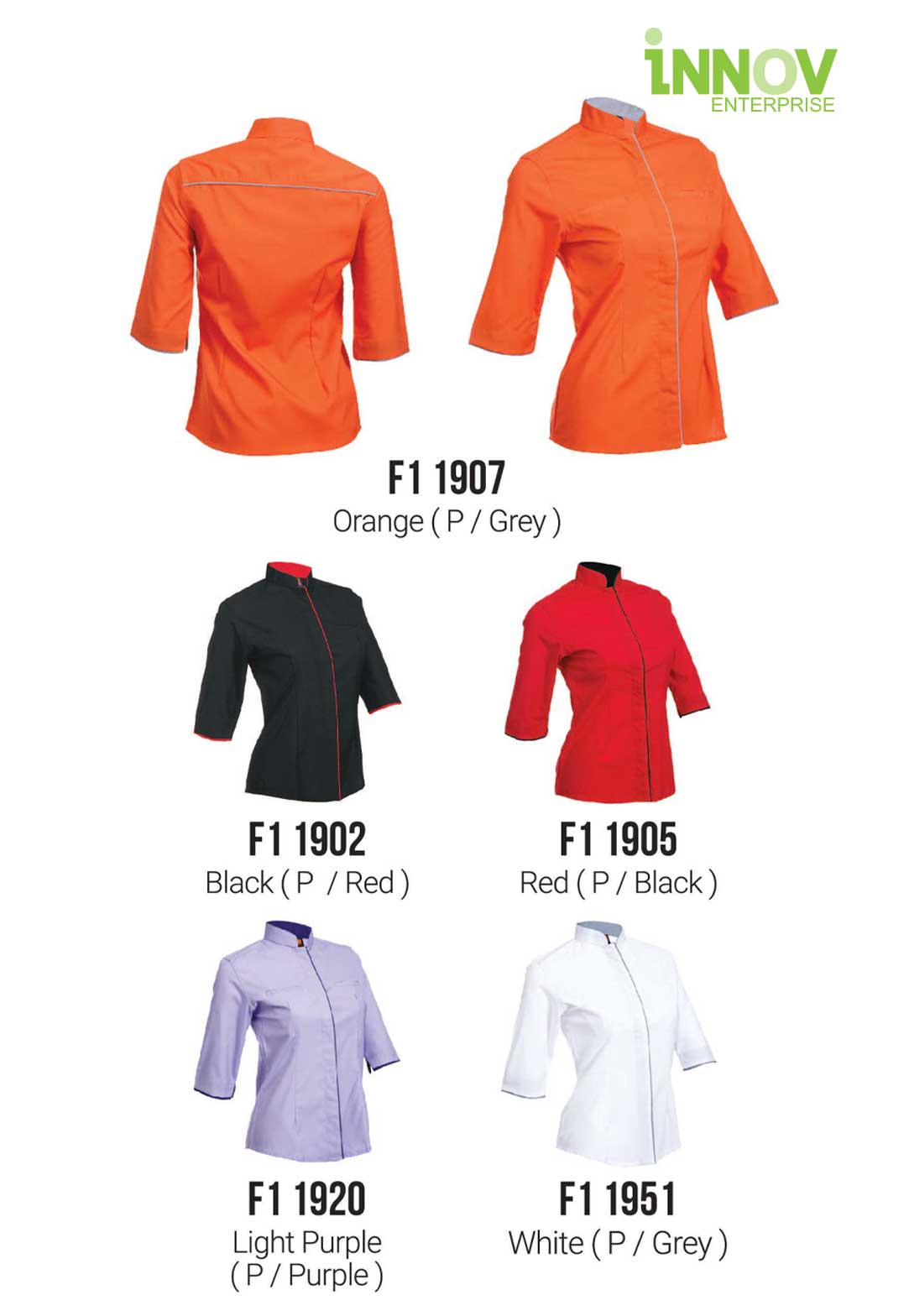 Create your business uniform online at no hassle. This ladies cutting comes with a mandarin collar with 2 pockets at the front chest. Print your own logo and design on it to use as uniform as corporate wear for your customer service staff, waitress or retail staff.