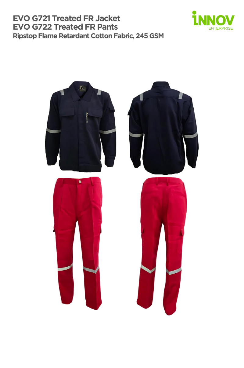 The EVO G720 Treated FR Coverall is designed to deliver maximum safety and durability in high-risk industrial environments. Constructed from robust Ripstop Flame Retardant Cotton Fabric (245 GSM), this FR Coverall is certified to EN ISO 11612 standards (A1, B1, C1), ensuring reliable flame-resistant protection for professionals in welding, electrical engineering, and the oil and gas sector.