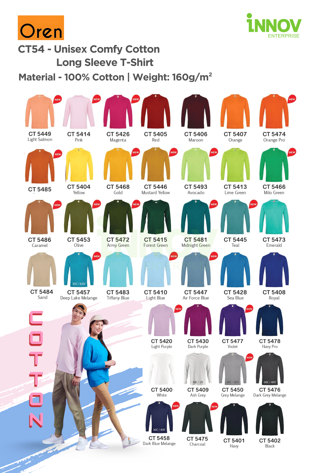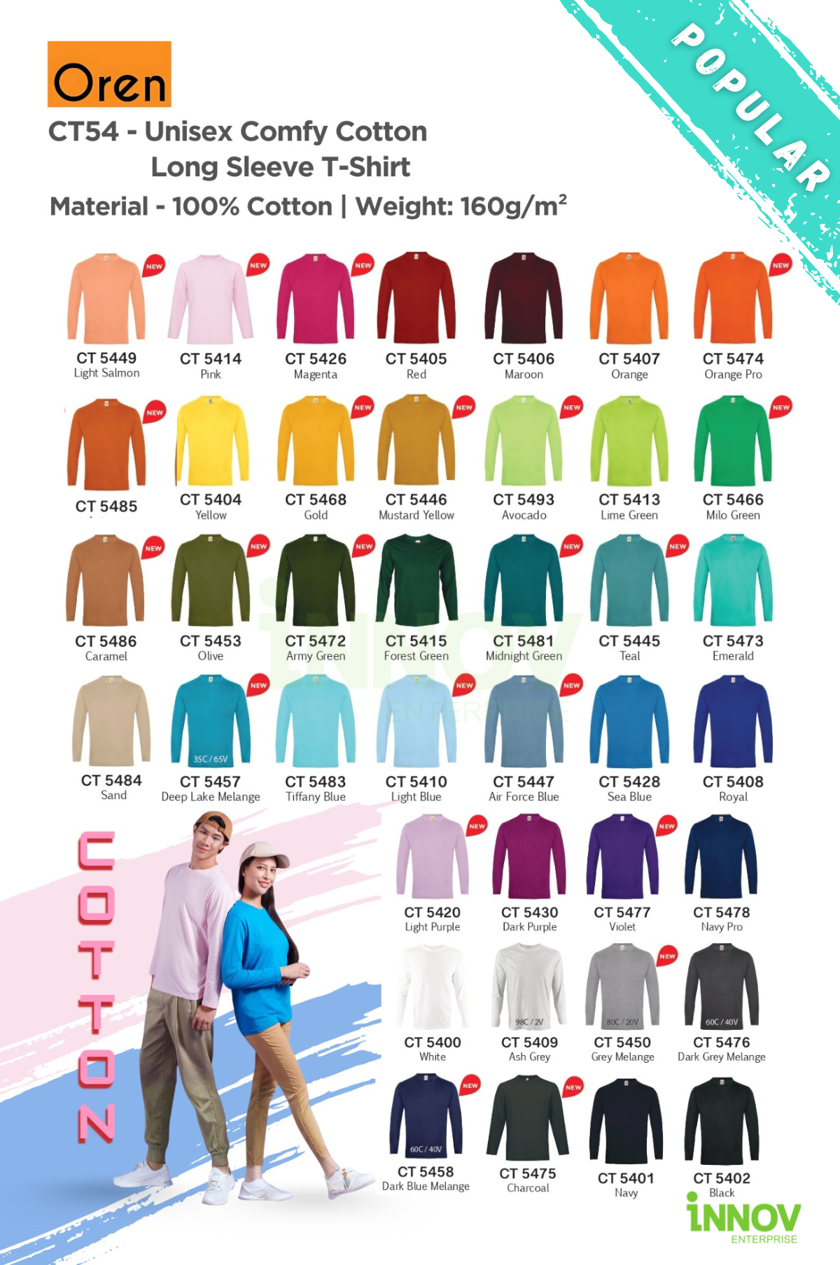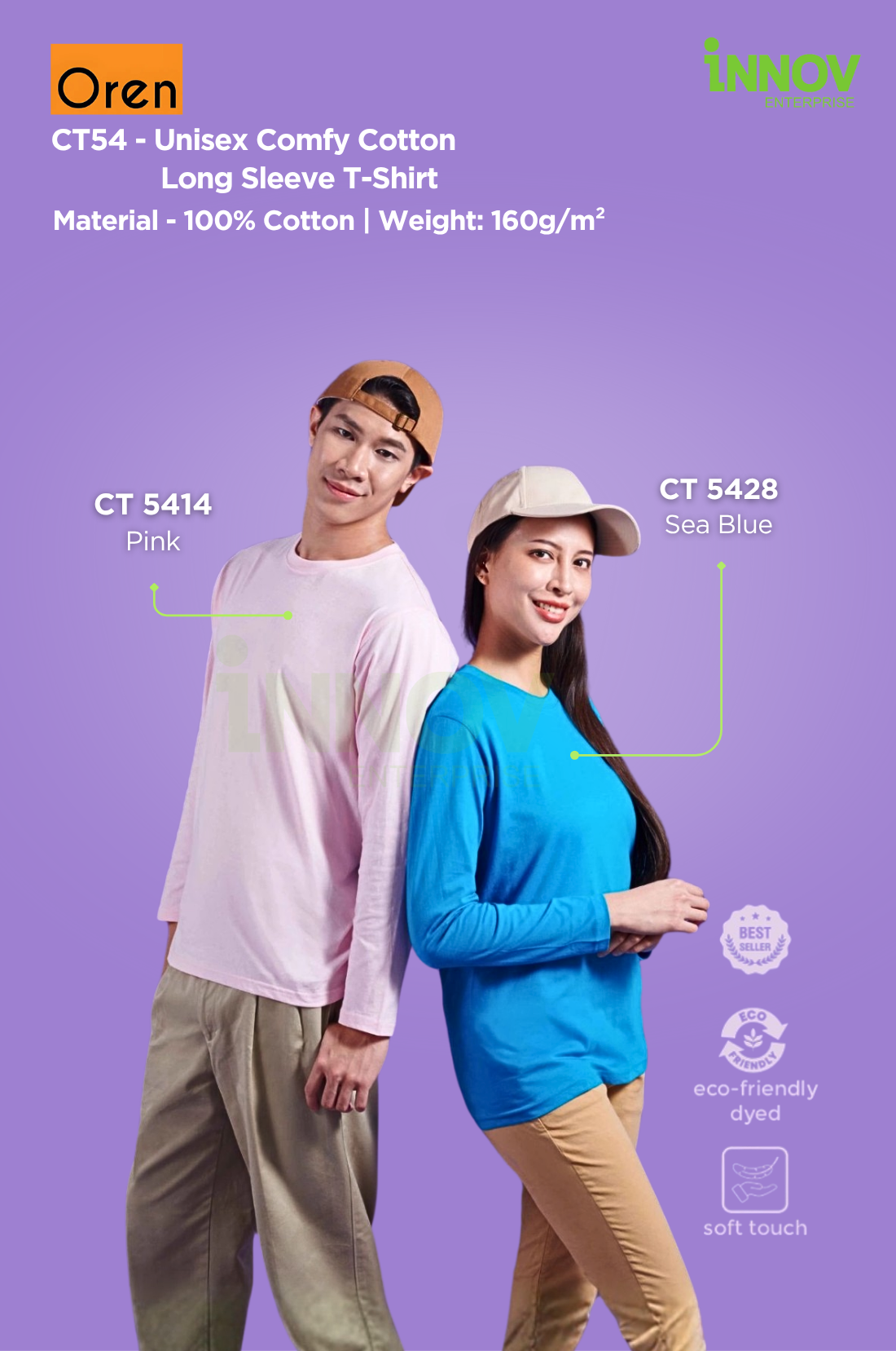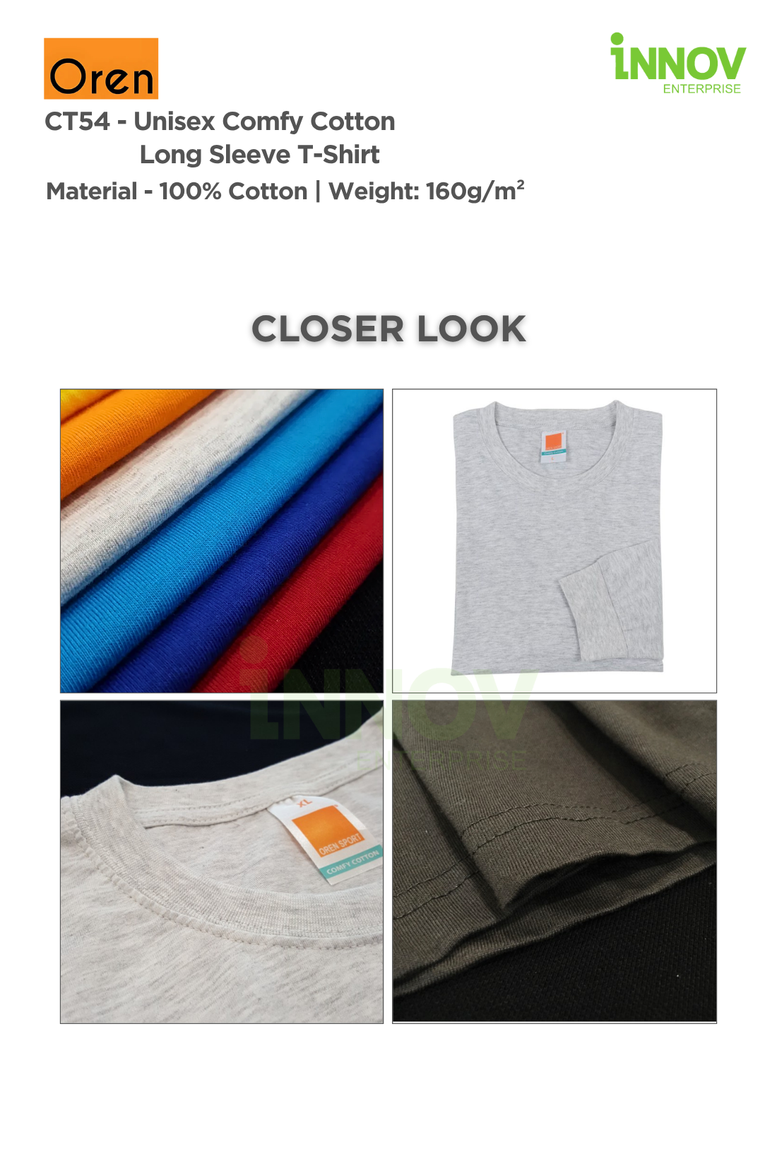 The CT54 Unisex Comfy Cotton Long Sleeve T-Shirt offers all-day comfort and breathability, making it an ideal Cotton Long Sleeve T Shirt for corporate wear, school uniforms, events, and daily casual use. Made from 100% cotton with a 160g/m² fabric weight, it provides a smooth, natural feel that is gentle on the skin — suitable for indoor offices or light outdoor wear in Singapore’s climate.