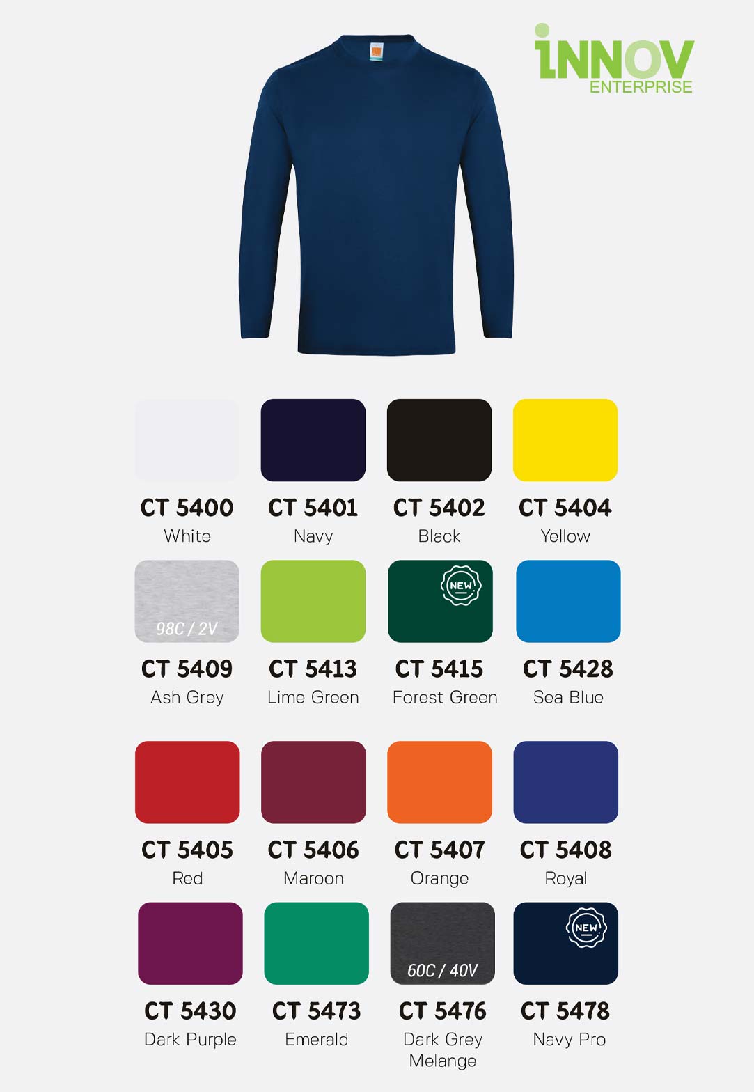 The soft-touch cotton fabric delivers breathable comfort with lasting durability, while its eco-friendly dyed material ensures colour vibrancy wash after wash. Designed with a relaxed unisex fit for ease of movement, the CT54 offers long sleeve coverage for added warmth and style, making it suitable for both work and leisure settings.Perfect for corporate teams, retail staff, student uniforms, community groups, or promotional branding, this Cotton Long Sleeve T Shirt provides a balance of comfort, quality, and everyday wearability — a versatile and reliable staple for any wardrobe.