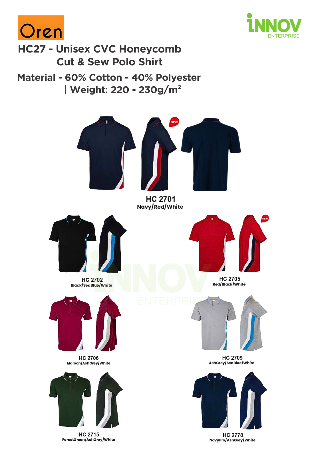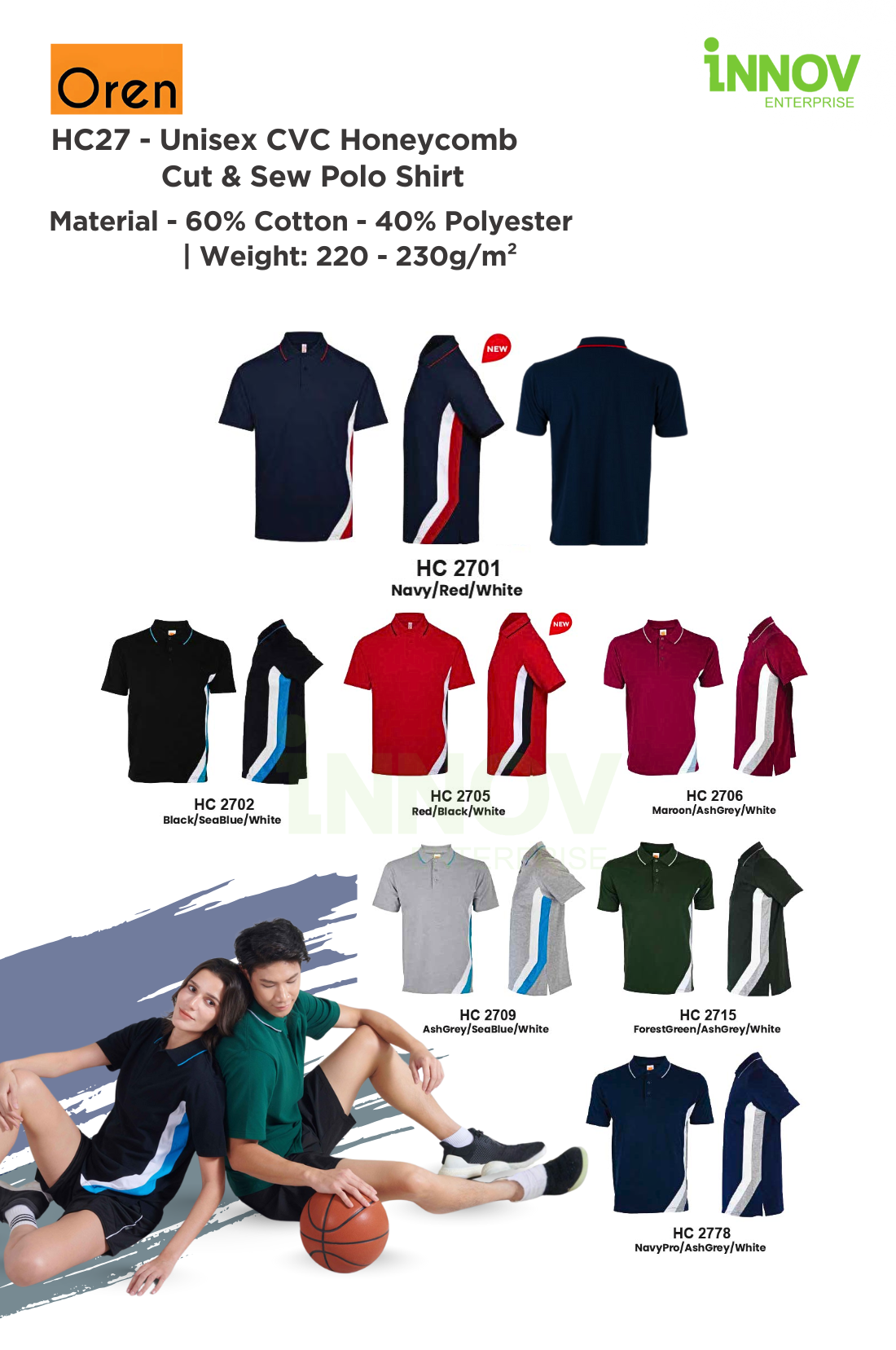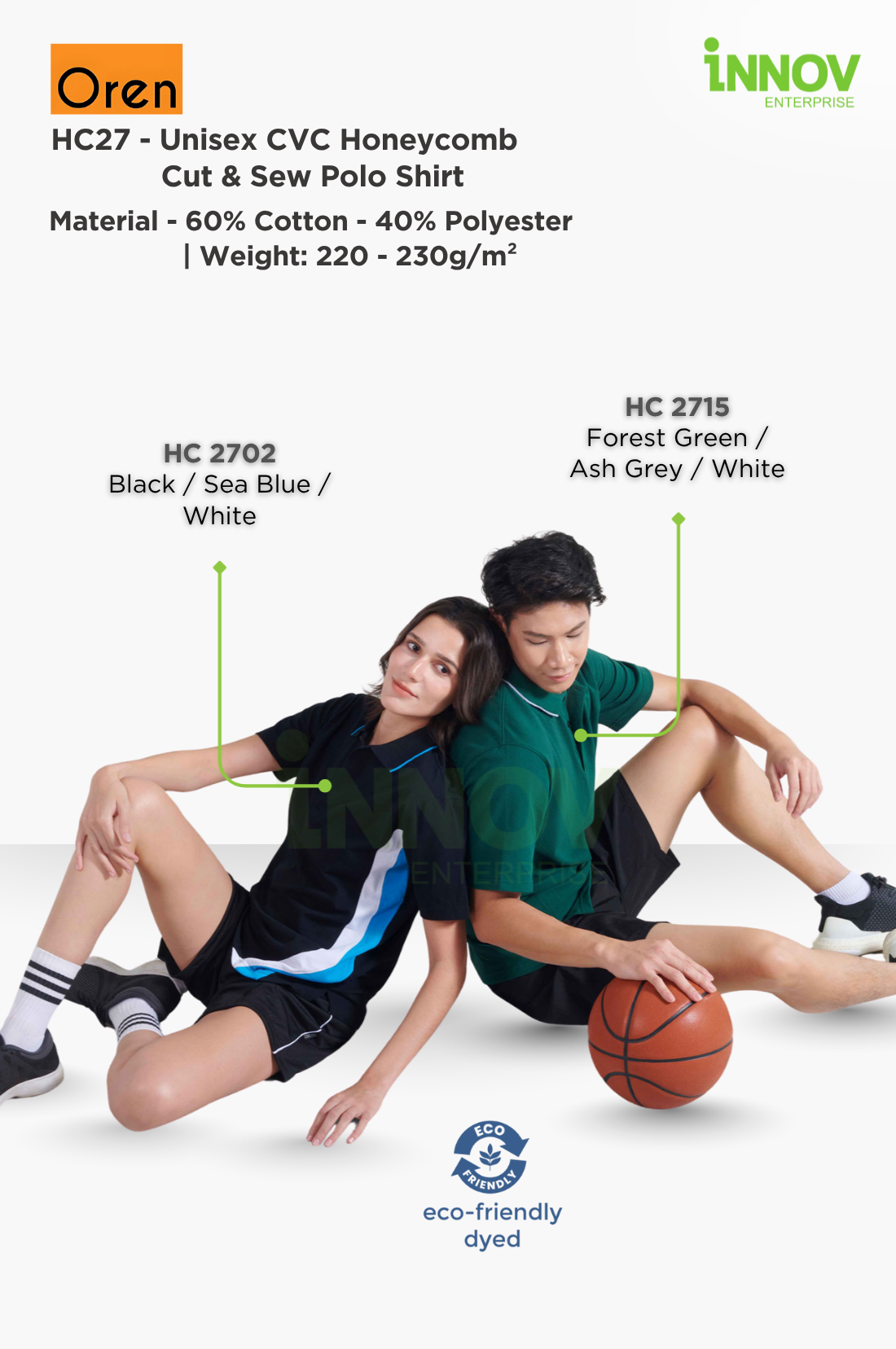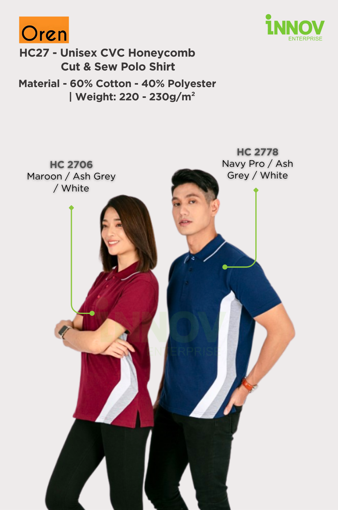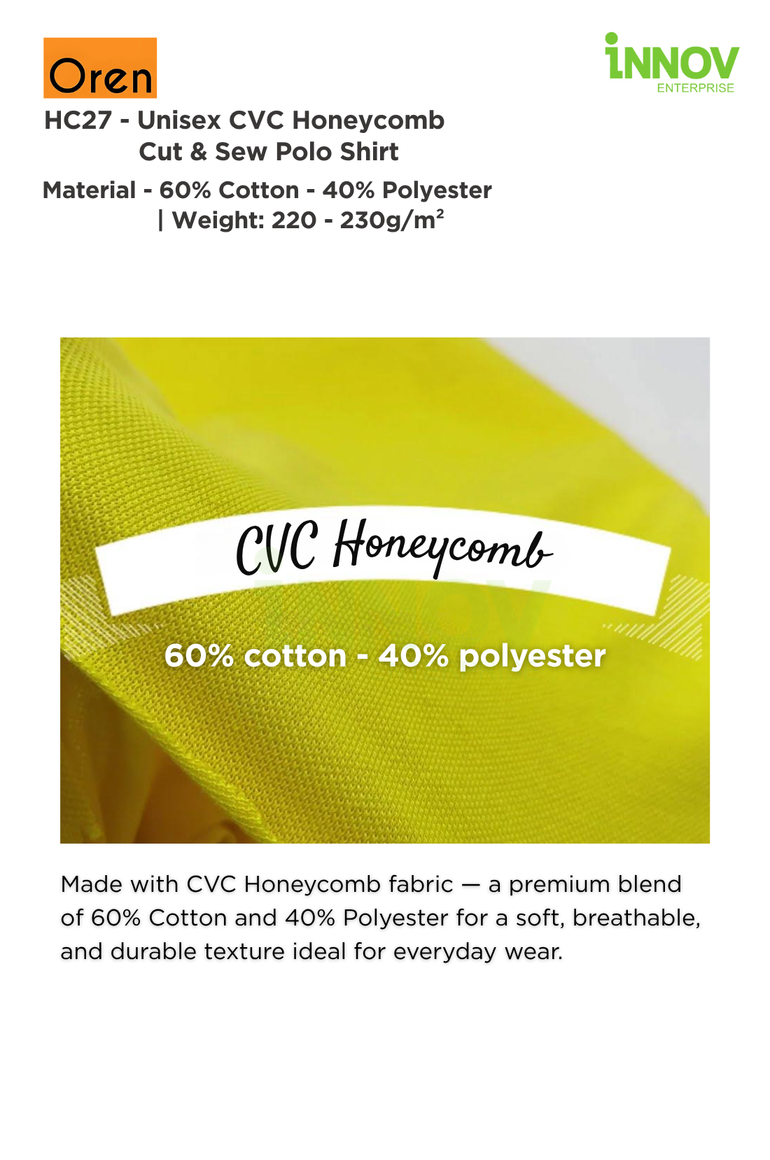 Order Now! Stand out in style with the HC27 Unisex CVC Honeycomb Cut & Sew Polo Shirt — designed for comfort, function, and flair.  Contact Innov Enterprise today for a free consultation and quotation on your polo printing needs!