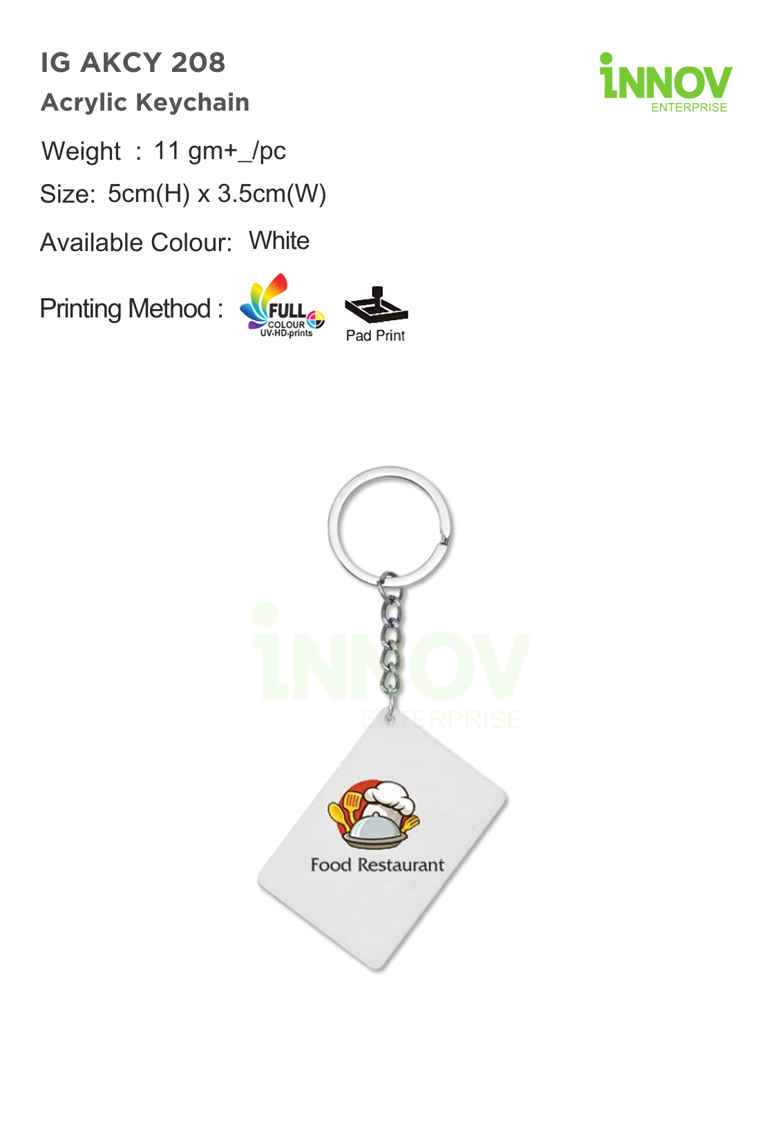 Order Now! Create cost-effective and impactful Custom Acrylic Keychains Bulk with the IG AKCY 208 Acrylic Keychain. Add to quote or contact Innov Enterprise today for a free quotation and professional branding consultation.