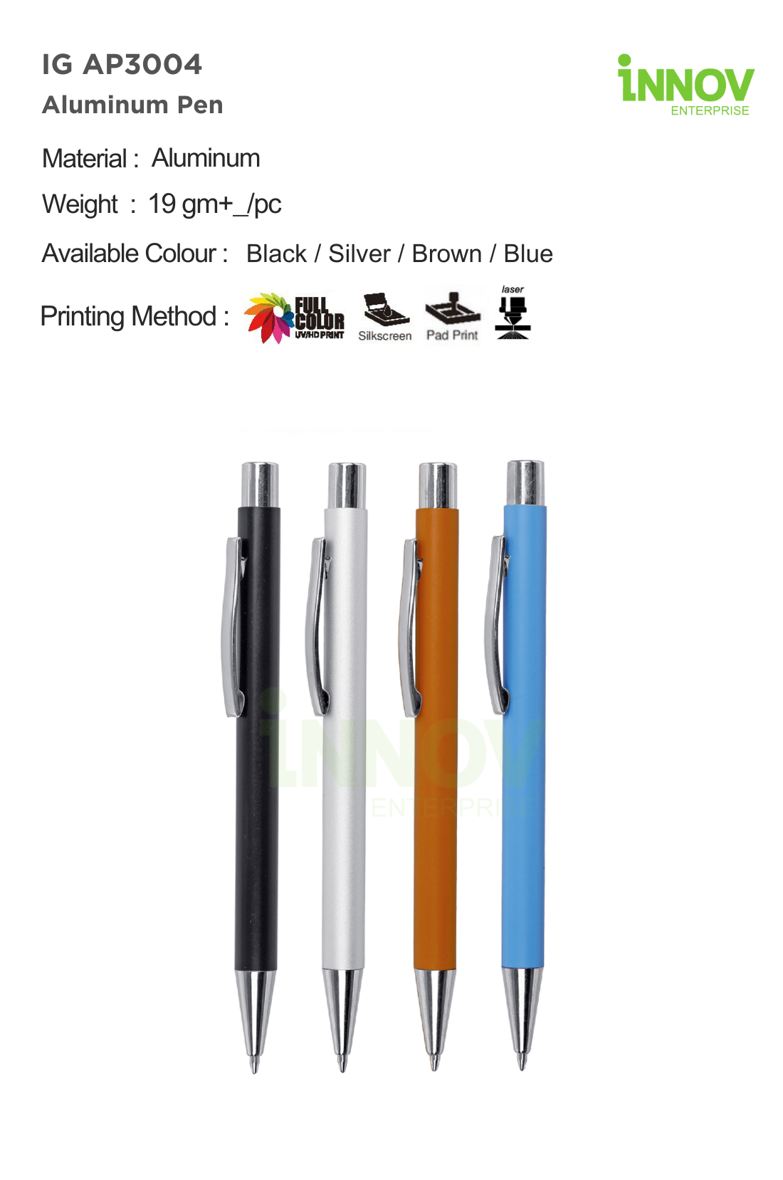 Customise the IG AP3004 Aluminum Pen with your company logo, event name, campaign message, or staff designation for use in corporate giveaways, onboarding kits, seminars, conferences, and branded office stationery that delivers daily brand exposure.