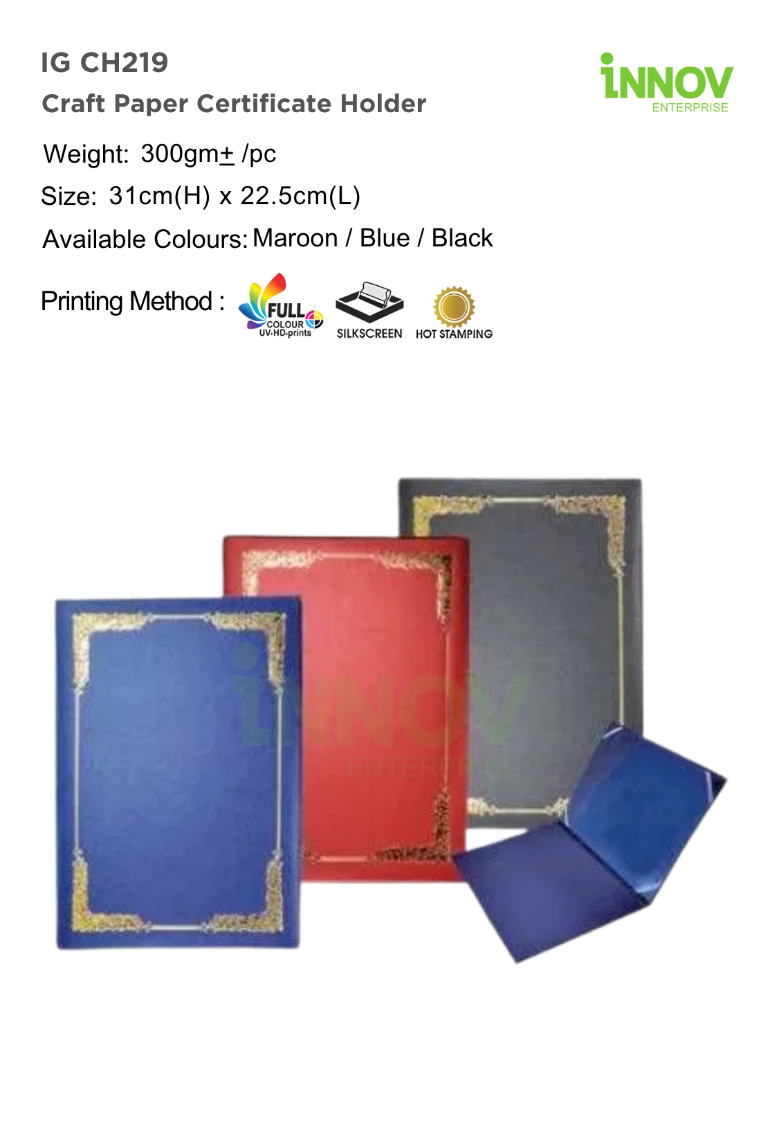 Order Now! Looking to customise a high-quality Custom Certificate Folder for your organisation? Add to quote or contact Innov Enterprise today for a free quotation and design consultation. Let us help you create impactful and eco-friendly presentation solutions for your brand.