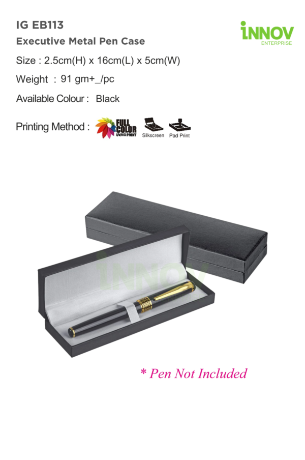 Innov Enterprise provides professional branding solutions to transform this case into a refined Personalised Metal Pen Case suitable for corporate branding and promotional campaigns.