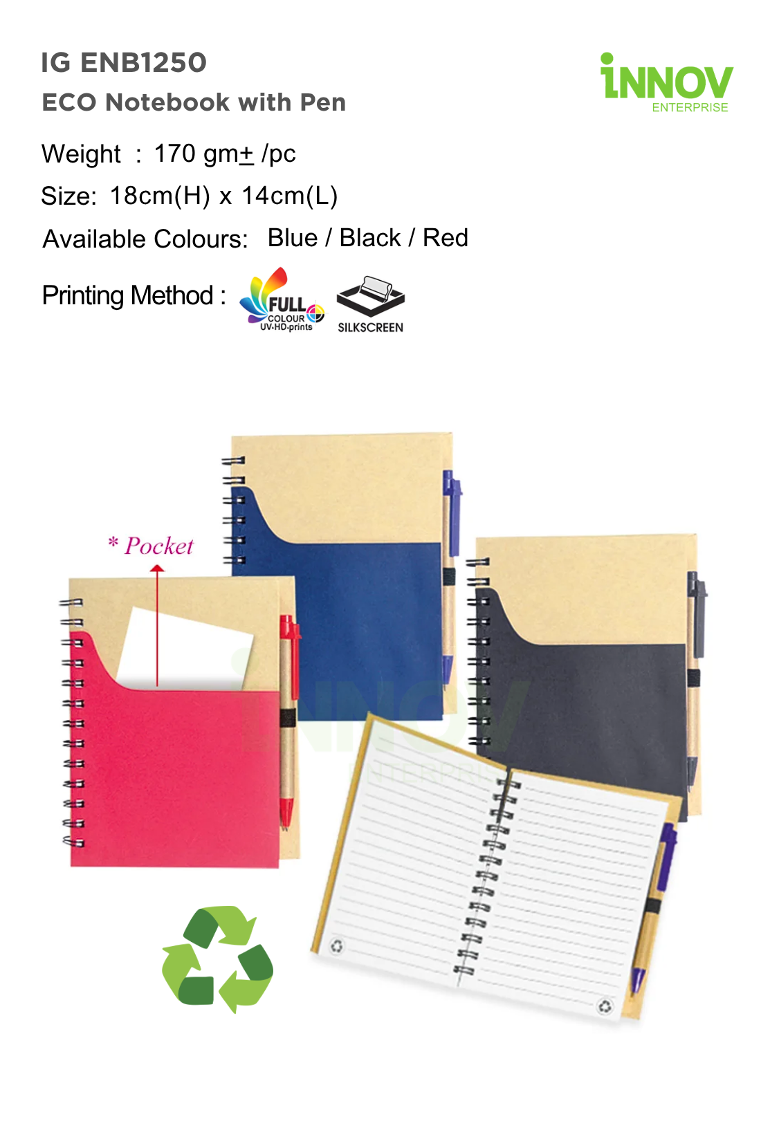 Order Now! Looking to create your own Personalised Eco Notebook with Pen? Add to quote or contact Innov Enterprise today for a free quotation and design consultation.