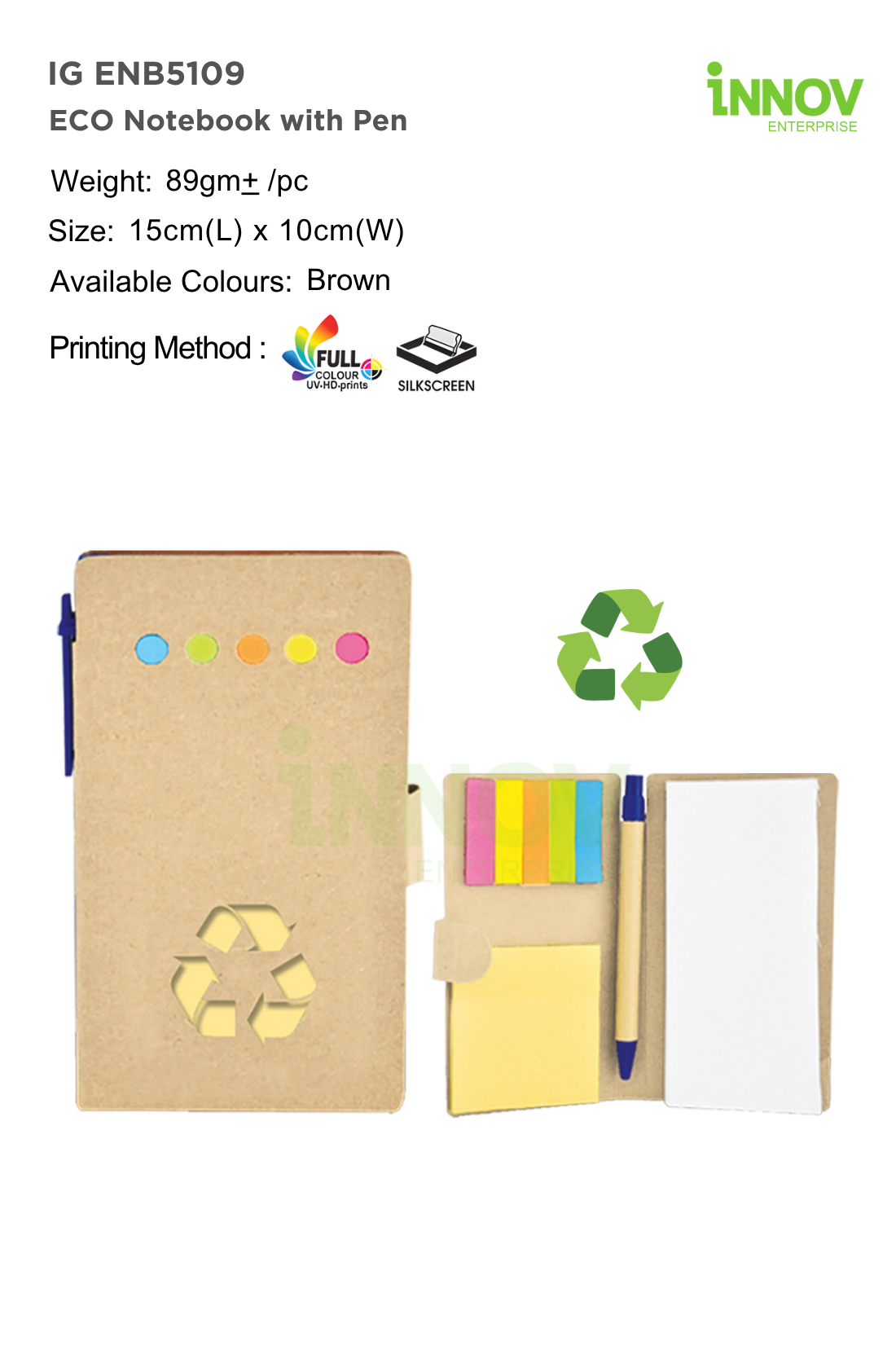 The IG ENB5109 ECO Notebook with Pen is a practical Notebook Set with Custom Logo ideal for sustainable corporate branding and daily use. Supplied and customised by Innov Enterprise, it measures 15 cm × 10 cm and lightweight build of approx. 89 g, offering a compact and portable design.