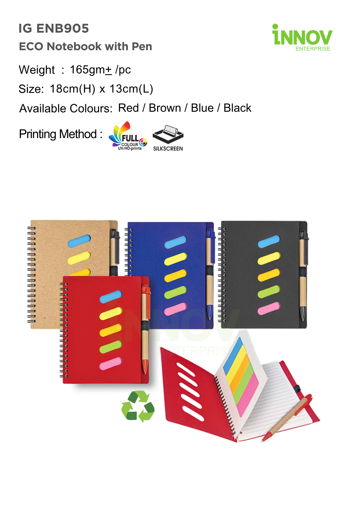The IG ENB905 ECO Notebook with Pen is a stylish Personalised Eco Notebook Set ideal for corporate gifting and daily use. Supplied and customised by Innov Enterprise, it measures 18 cm × 13 cm with an approximate weight of 165 g, offering a portable and comfortable design.