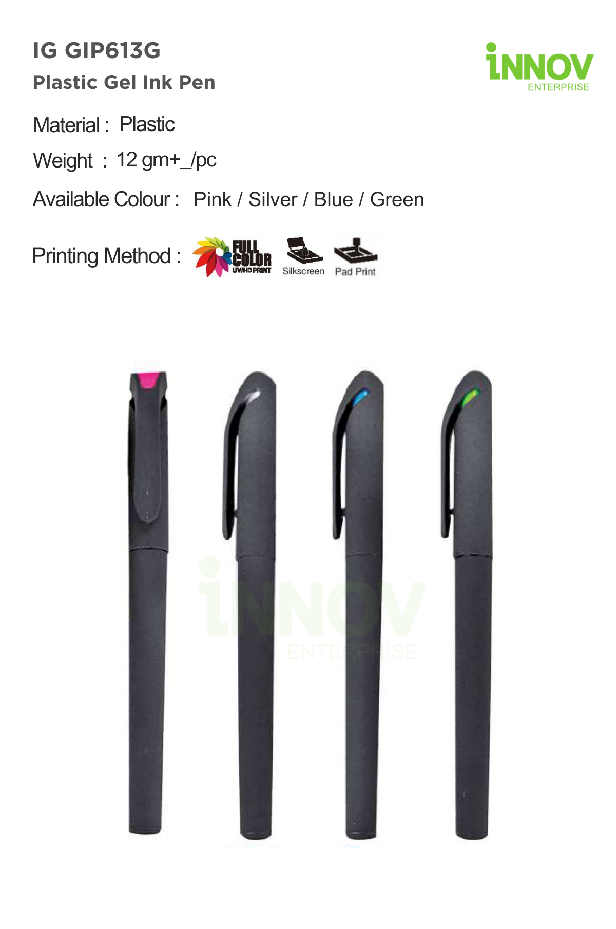 Innov Enterprise provides dependable branding solutions for plastic gel ink pens, ensuring clear and presentable logo application.