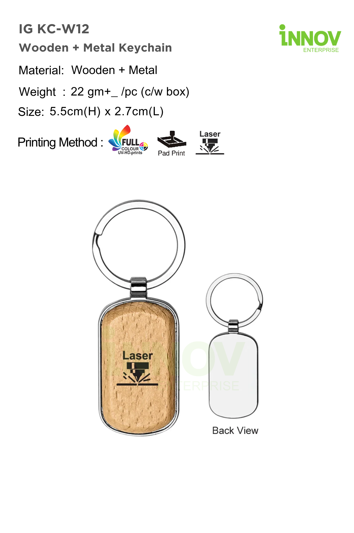 The IG KC-W12 Wooden + Metal Keychain is a refined and practical choice for businesses ordering Custom Keychains Bulk for corporate promotions, events, and branded giveaways. Designed and supplied by Innov Enterprise, it features a natural wooden centre paired with a durable metal frame for a premium yet professional look.