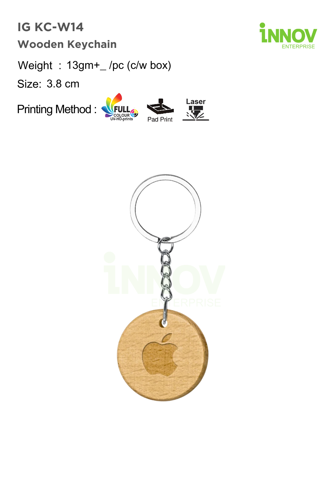 The IG KC-W14 Wooden Keychain is a compact, round Printed Wooden Keychain crafted for corporate gifting and daily brand exposure. Made from natural wood with a smooth circular profile and visible grain, it delivers a warm, handcrafted feel that elevates brand perception beyond plastic alternatives. The light wood tone enhances contrast, helping printed or engraved logos appear clearer and more refined—ideal for professional, minimalist branding.
